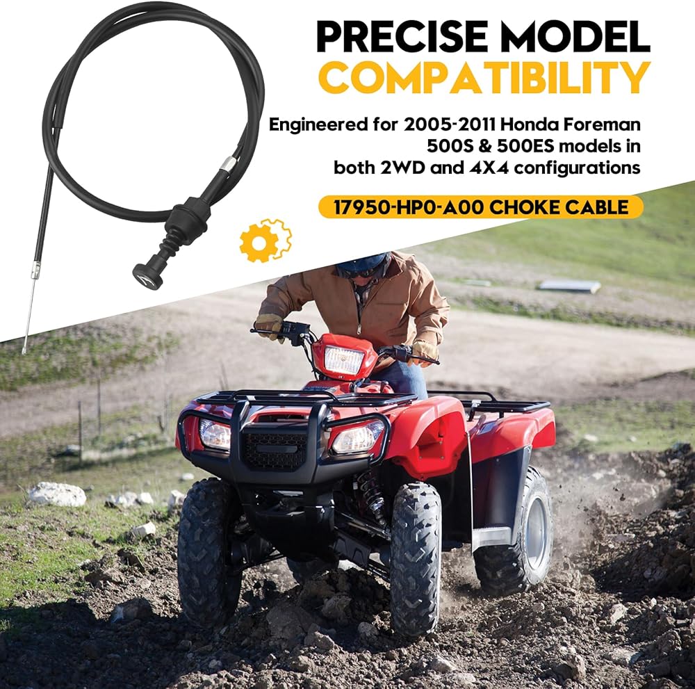 Precise Model Compatibility: Engineered for 2005-2011 Honda Foreman 500S & 500ES models in both 2WD and 4X4 configurations. This choke cable for Honda 500 is specifically designed for the TRX500 platform, making it a crucial component for Honda Foreman 500 maintenance. Notably, it provides a perfect fit for 09 Foreman 500, extending its compatibility across multiple model years with consistent reliability.
