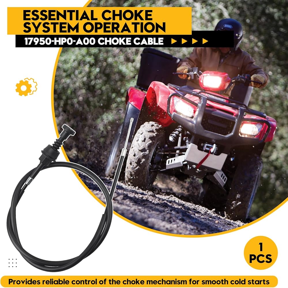 Essential Choke System Operation: Provides reliable control of the choke mechanism for smooth cold starts. This choke cable universal design connects directly to Honda Foreman 500 choke plunger, working seamlessly with the engine system. As part of a comprehensive manual choke cable kit, it ensures proper starting functionality in various weather conditions, delivering consistent performance when you need it most.