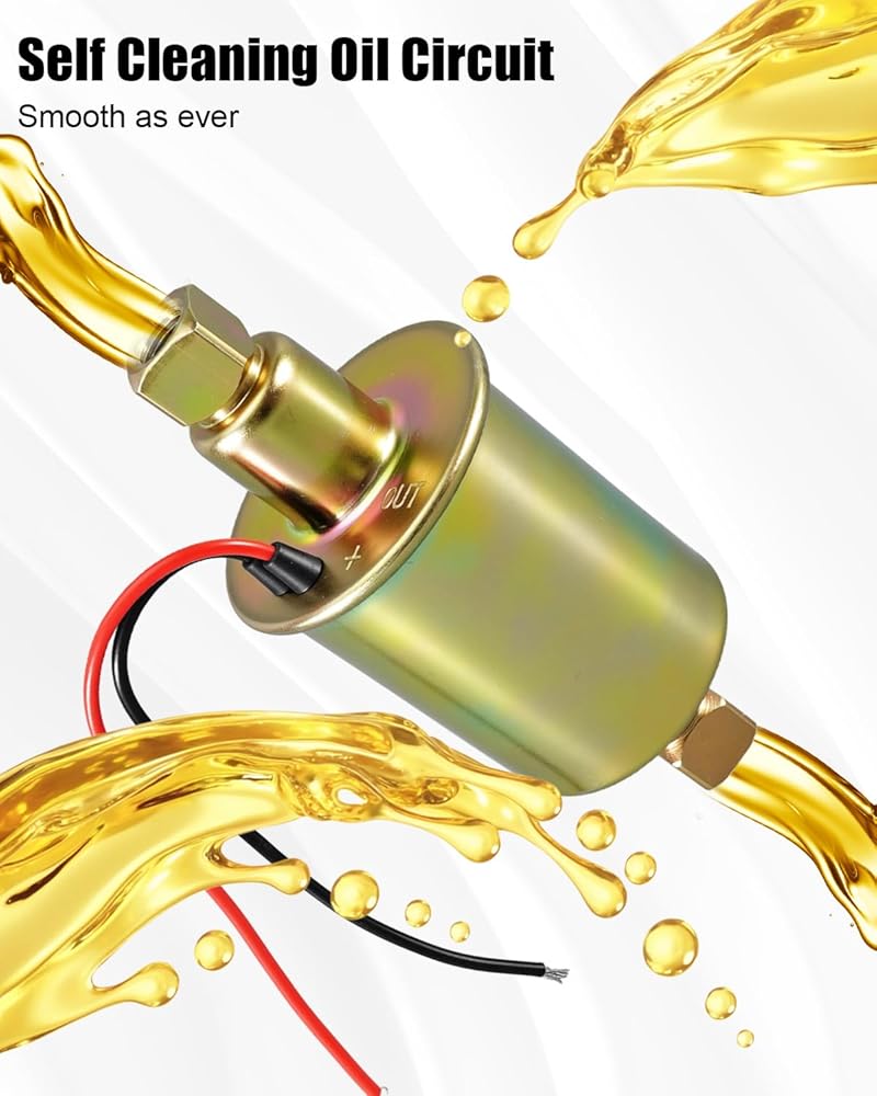 • Anti-Clogging Oil Protection: Electric fuel pump's optimized internal design prevents sludge buildup and clogging, ensuring smooth fuel flow and maintaining stable performance over extended use