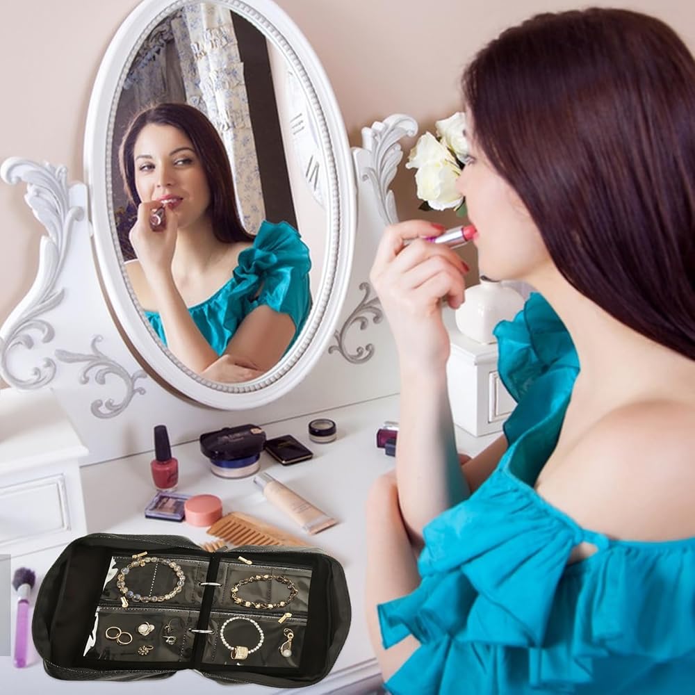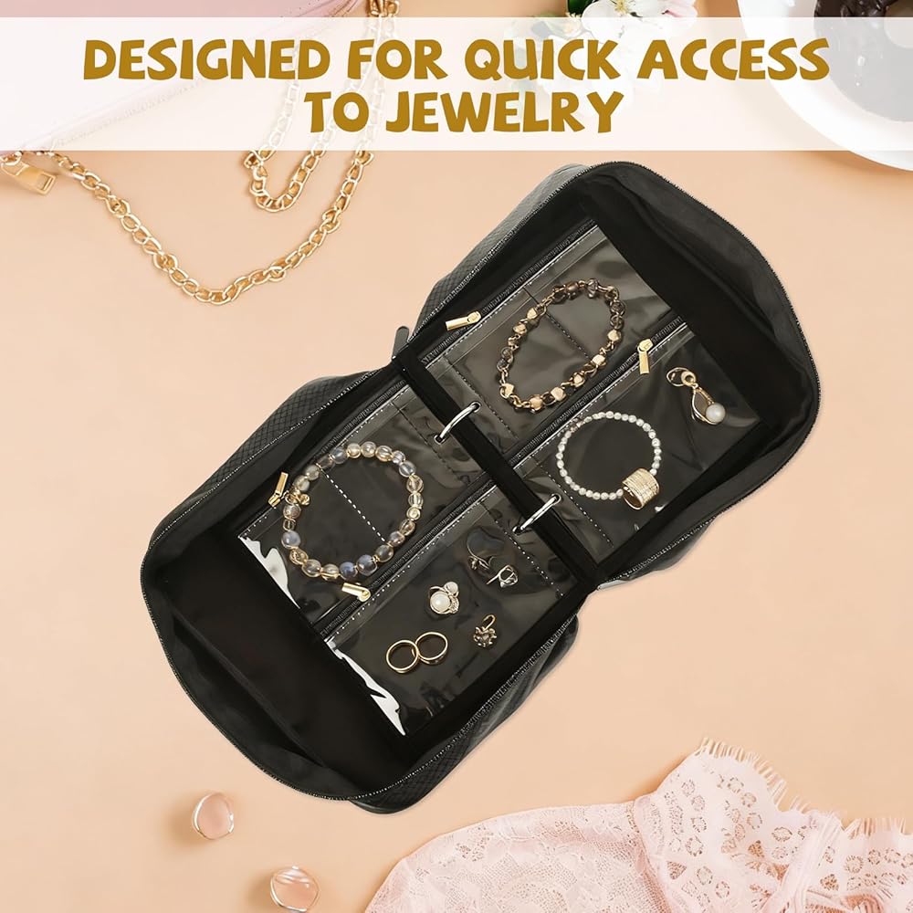 3.Crafted from durable nylon material, these travel jewelry organizers measure 25x20x8CM, ensuring they provide ample space without compromising portability.