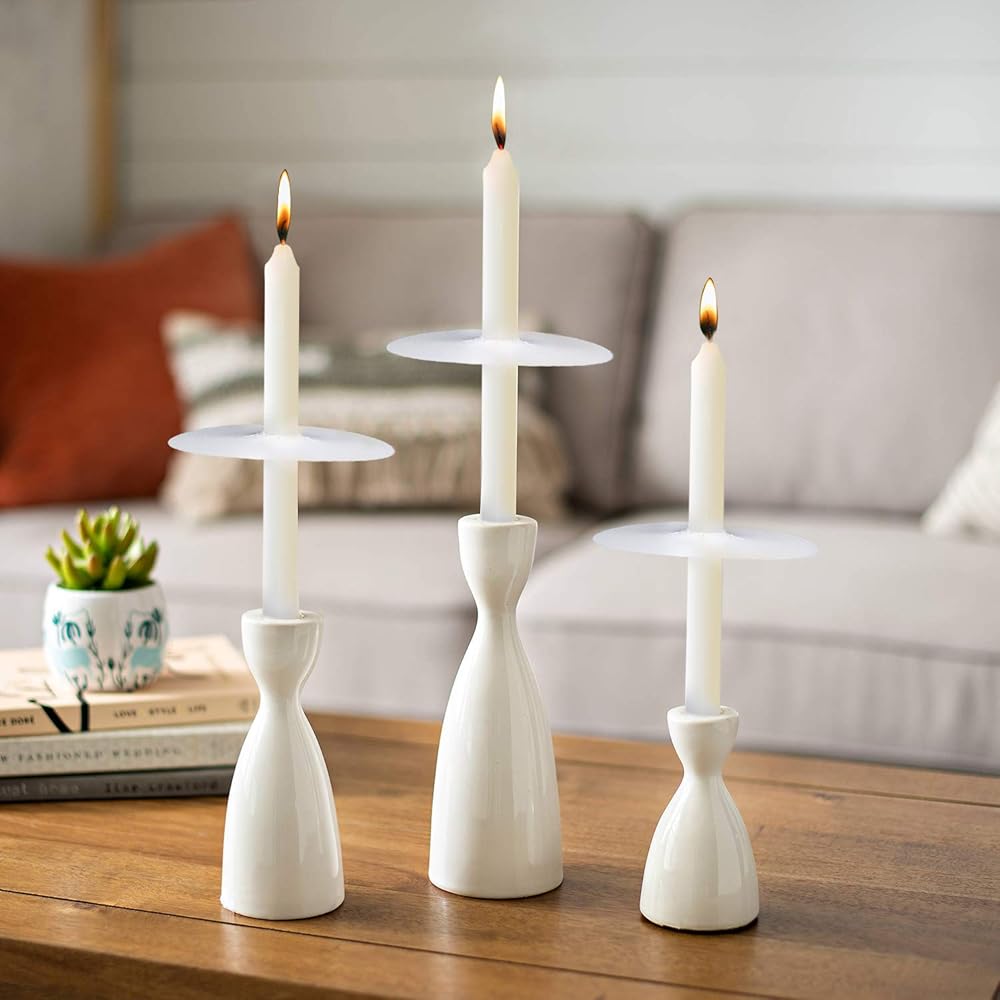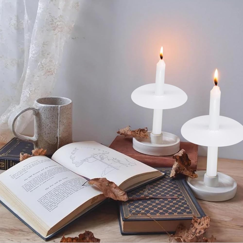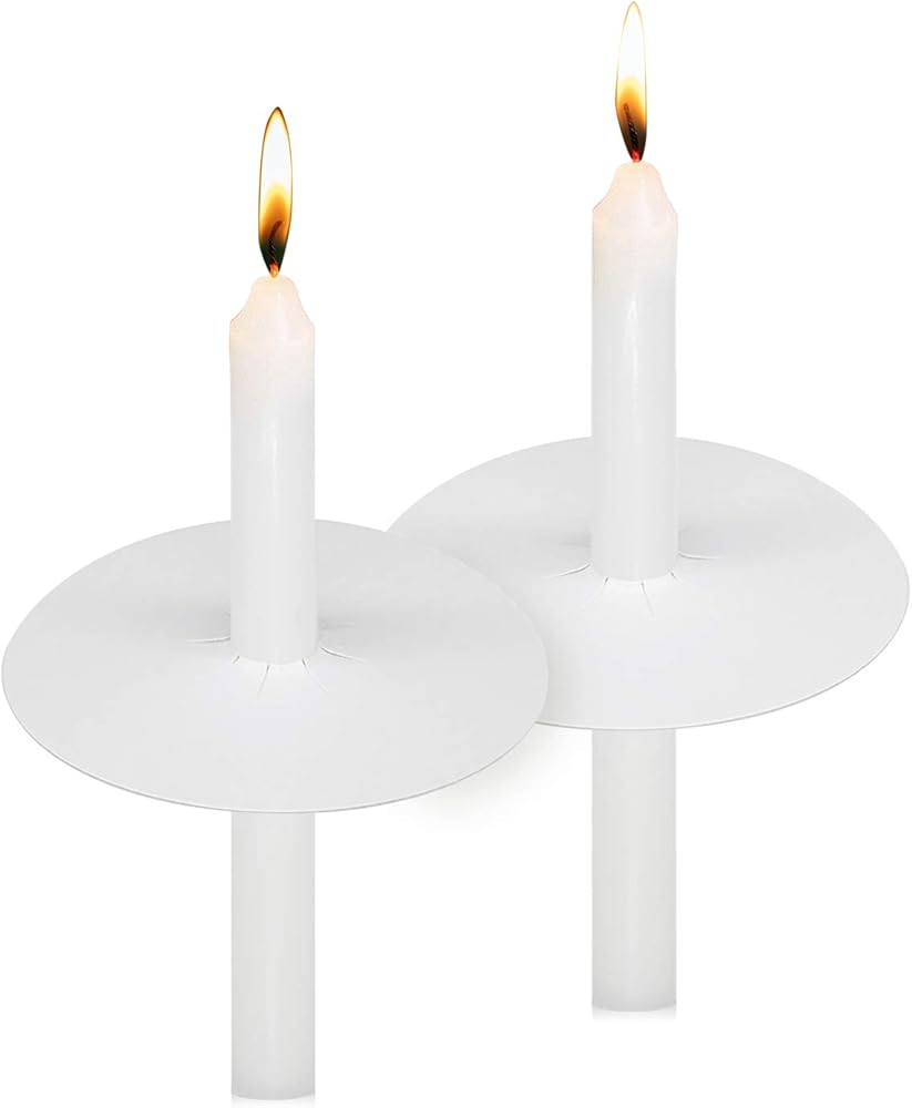 Premium White Finish – Smooth, unscented 5-inch slim candles paired with heavy-duty paper drip catchers (3-inch diameter) to prevent spills and maintain a polished look.