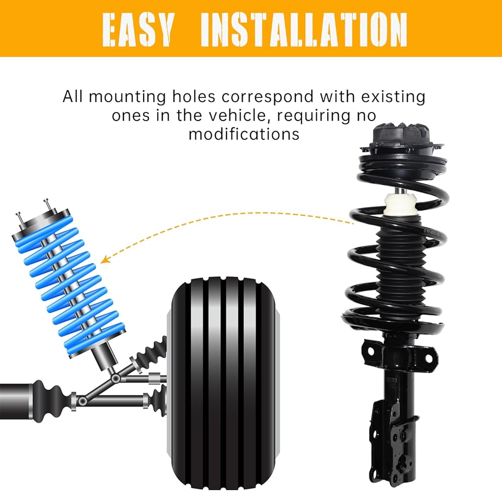 【سهلة التركيب】يمكنك إزالة الدعامات واستبدالها بسهولة في قطعة واحدة. لا تتطلب هذه استخدام ضاغط زنبركي خطير لتبديل الزنبركات، لذا فهي سريعة جدًا وآمنة وسهلة التركيب.