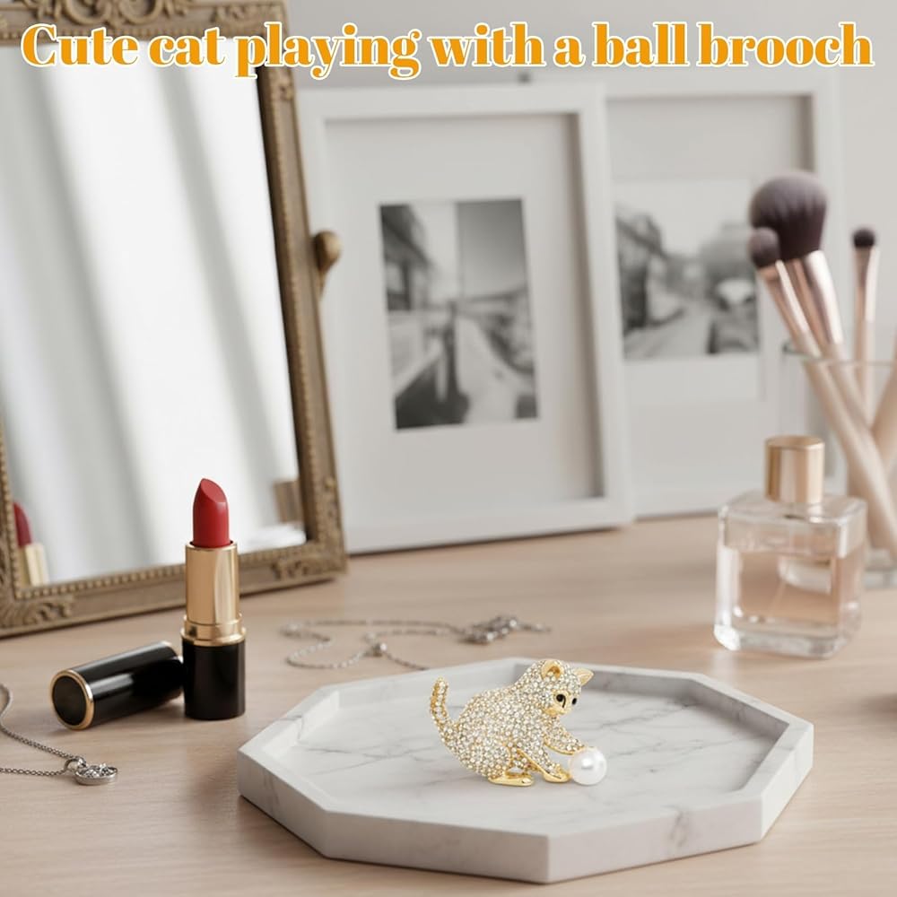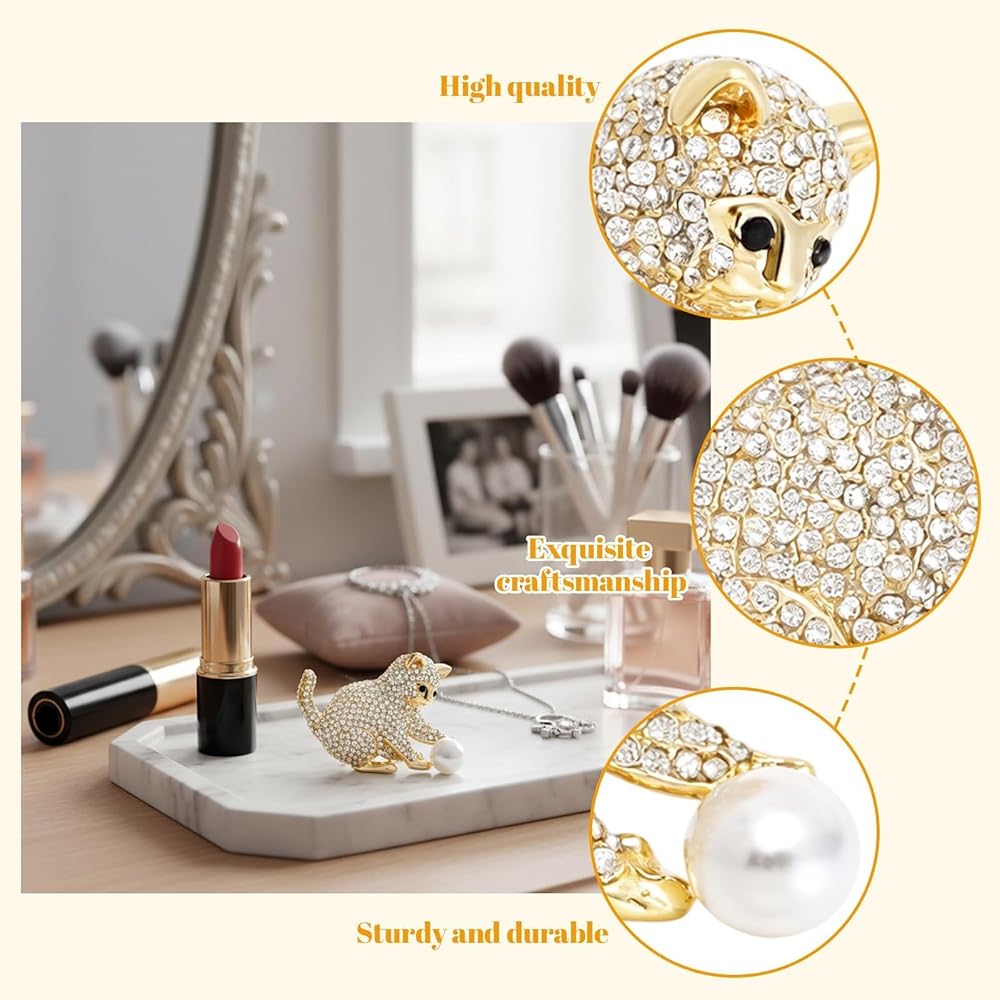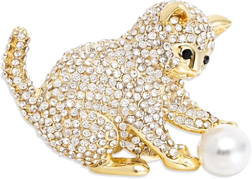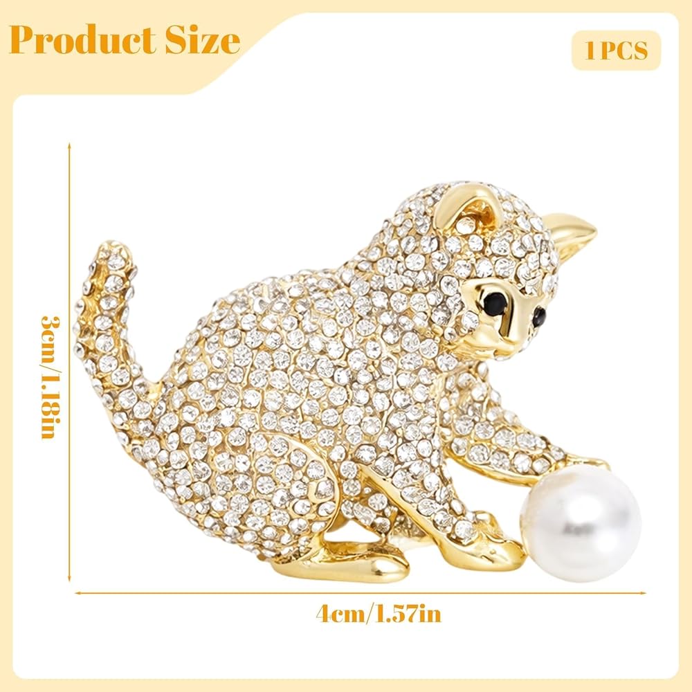 Cute Cat Brooch, Cat Pin, Cute Pins, Rhinestone Pearl Brooch Sparkly, Ideal Accessory for Parties and Special Occasions