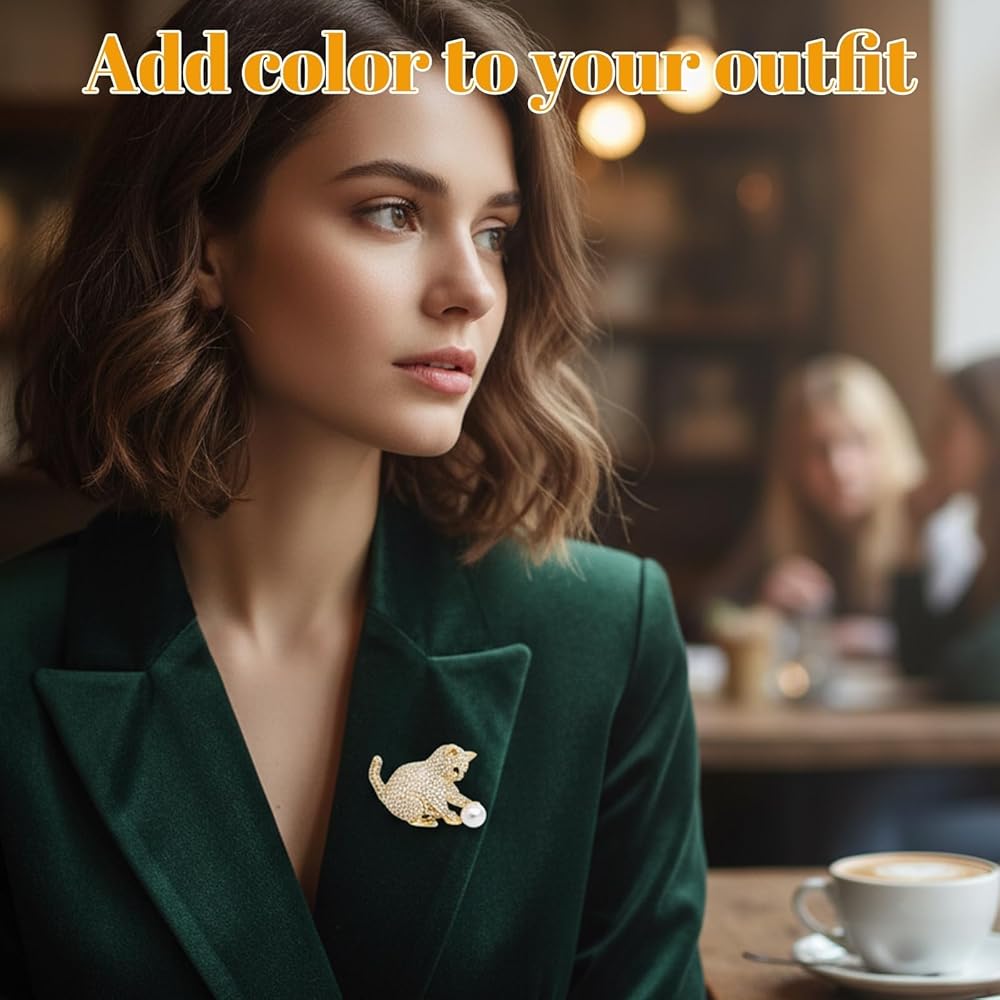 Versatile Styling Options: Wear this cat brooch on lapels, scarves, hats, or handbags for different looks; ideal for social gatherings, wedding events, and daily fashion ensembles; the elegant design transitions seamlessly from casual to formal occasions as brooch pins for women.