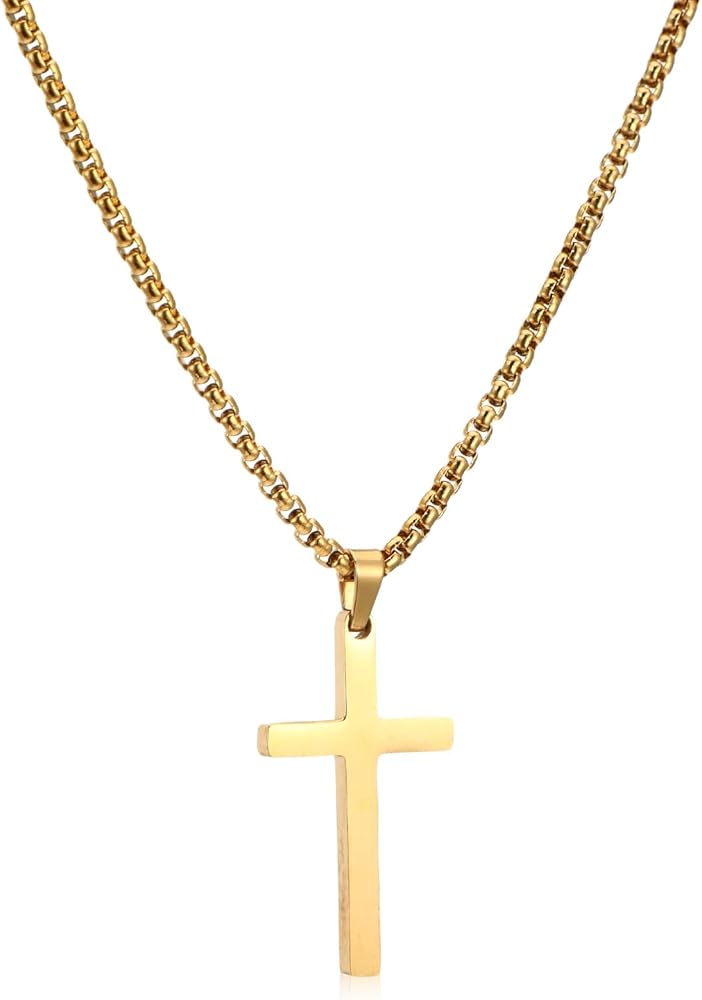 • ♥ PERFECT SIZE & FIT ♥ The gold stainless steel necklace measures 11.42 inches (29 cm), making it an ideal length for most men. The small cross pendant complements the chain with cross design, creating a balanced and stylish look. A versatile men's necklace that suits any occasion.