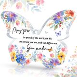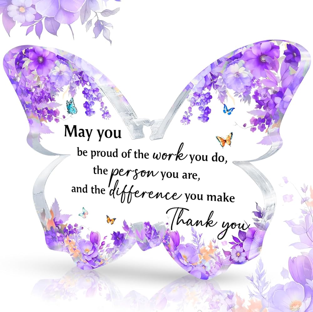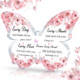 The ornament made of butterfly shape and acrylic material presents a clear and beautiful effect under different lighting. It is very suitable for placing on any platform such as desks, coffee tables, shelves, bedside tables, etc. The warm words on it remind you or your friends and give you endless energy. This is a very loving butterfly ornament