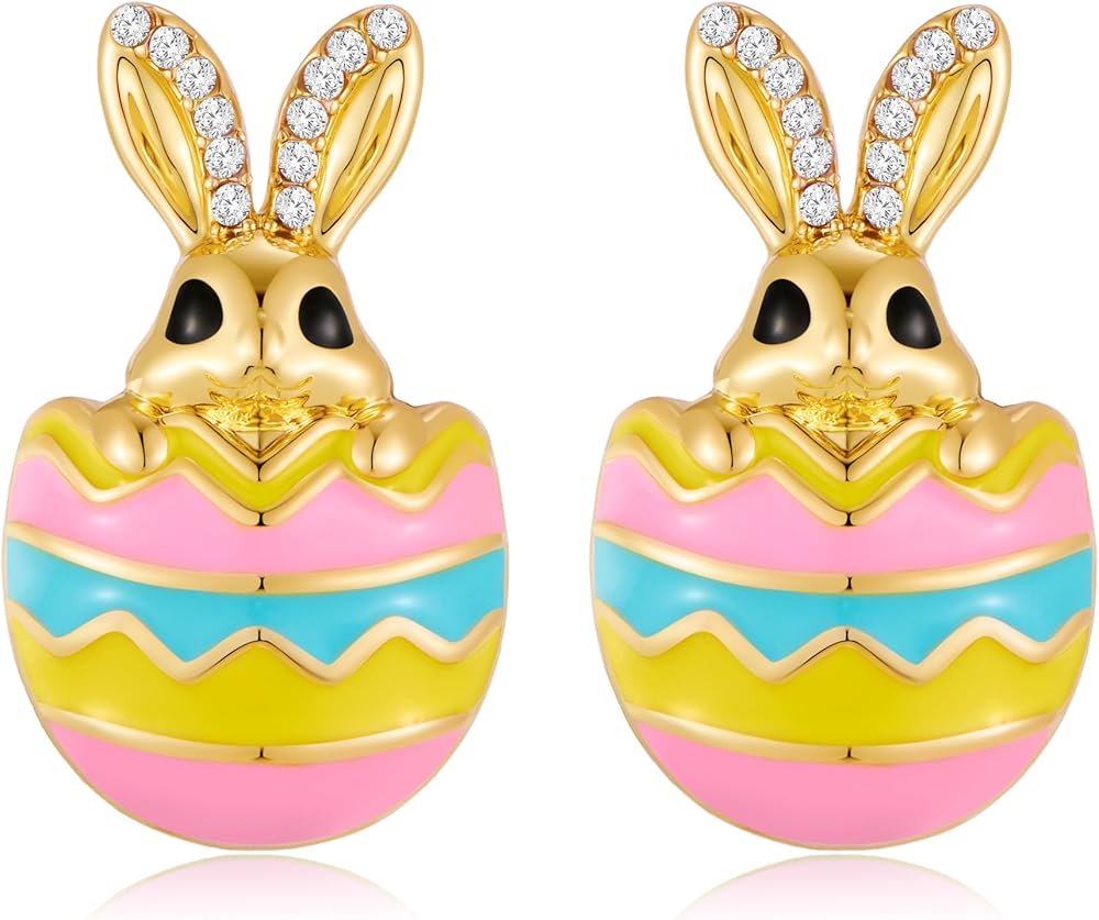 YUJIE أقراط أرنب عيد الفصح مطلية بالذهب عيار 18 قيراط مرصعة بالبيض الملون اللطيف مجوهرات لحشو سلة عيد الفصح لها in Kuwait
