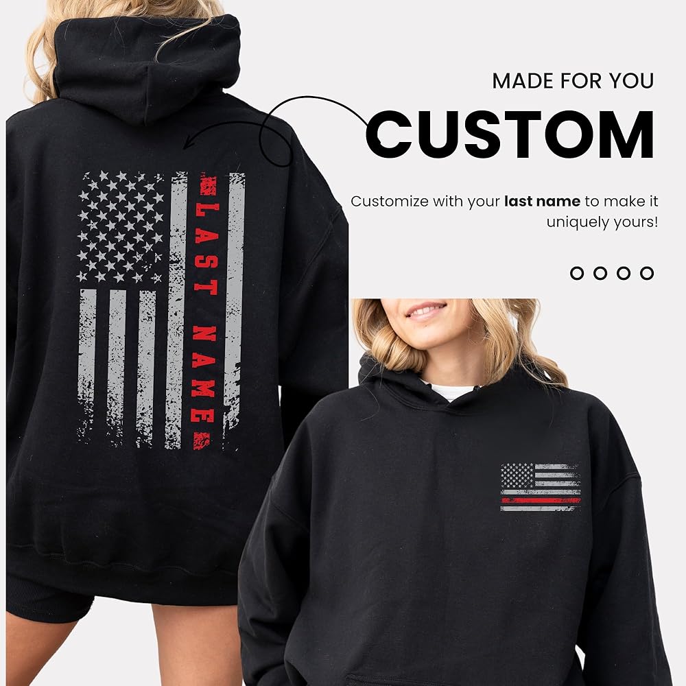 تي شيرت رجال إطفاء يحمل اسم العائلة مخصص للجنسين مع تي شيرت بألوان مريحة - ملابس رجال إطفاء فائقة النعومة وشخصية تتميز بعلم خط عمودي أحمر رفيع؛ هدية رجل الإطفاء المثالية