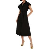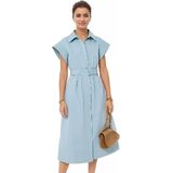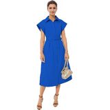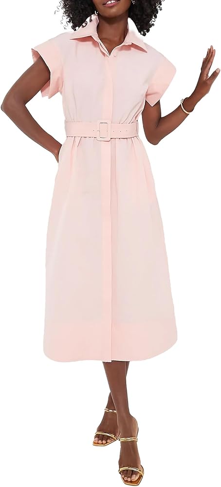 المزايا: يتميز بياقة واسعة، وفتحة أزرار أمامية، وحزام اختياري قابل للتعديل، وطول متوسط الطول وأكمام قصيرة مجنحة لمظهر أنيق. هذا الفستان ينضح بالأناقة والرقي والمظهر الأنثوي للغاية