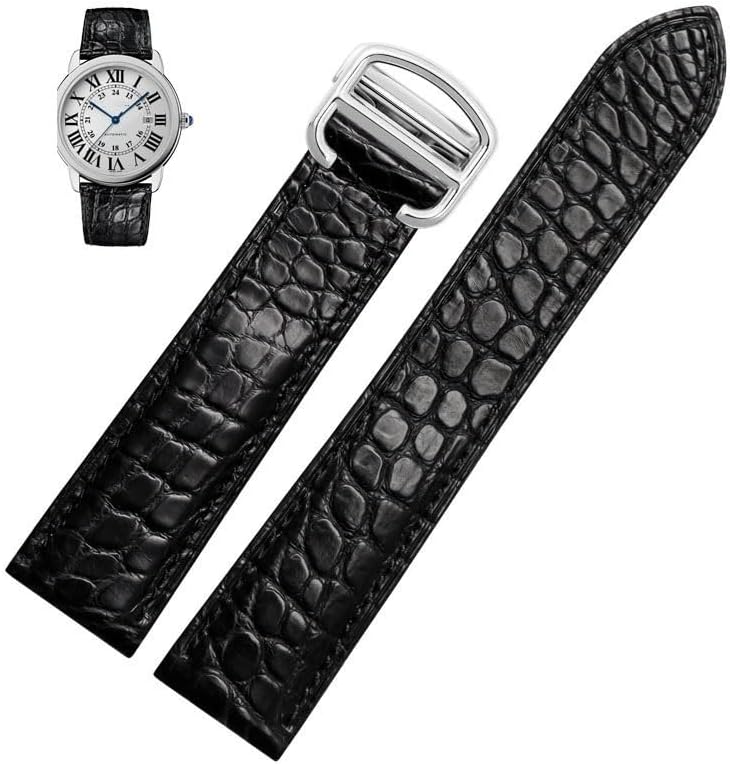 LOSUNLEN Leather Watch Strap For Cartier TANk SOLO RONDE London Kalibo Watch Chain with Folding Buckle