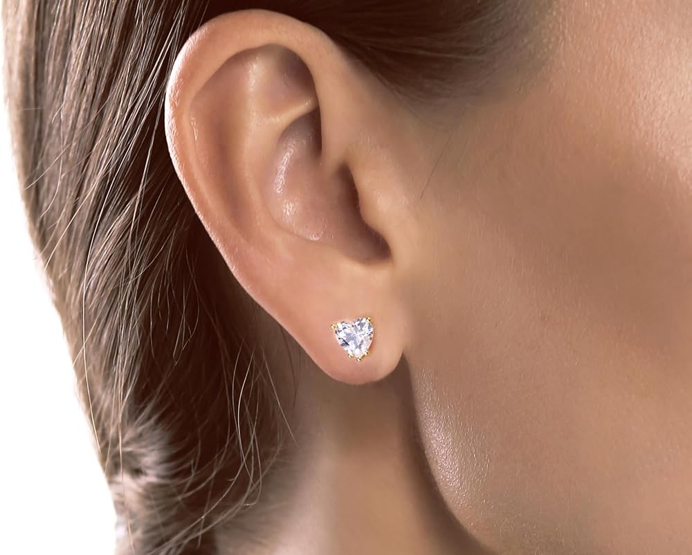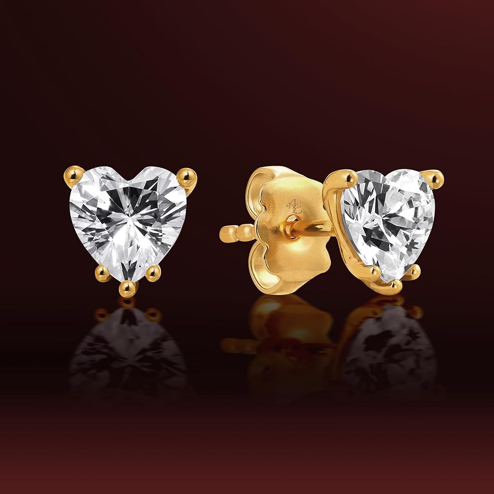 مجموعة Princess - "القلب المتلألئ" - أقراط على شكل قلب مقاس 6 × 6 مم (2.89 قيراط/زوج) زركونيا مكعبة مطلية بالذهب عيار 22 قيراط للأذنين الحساسة