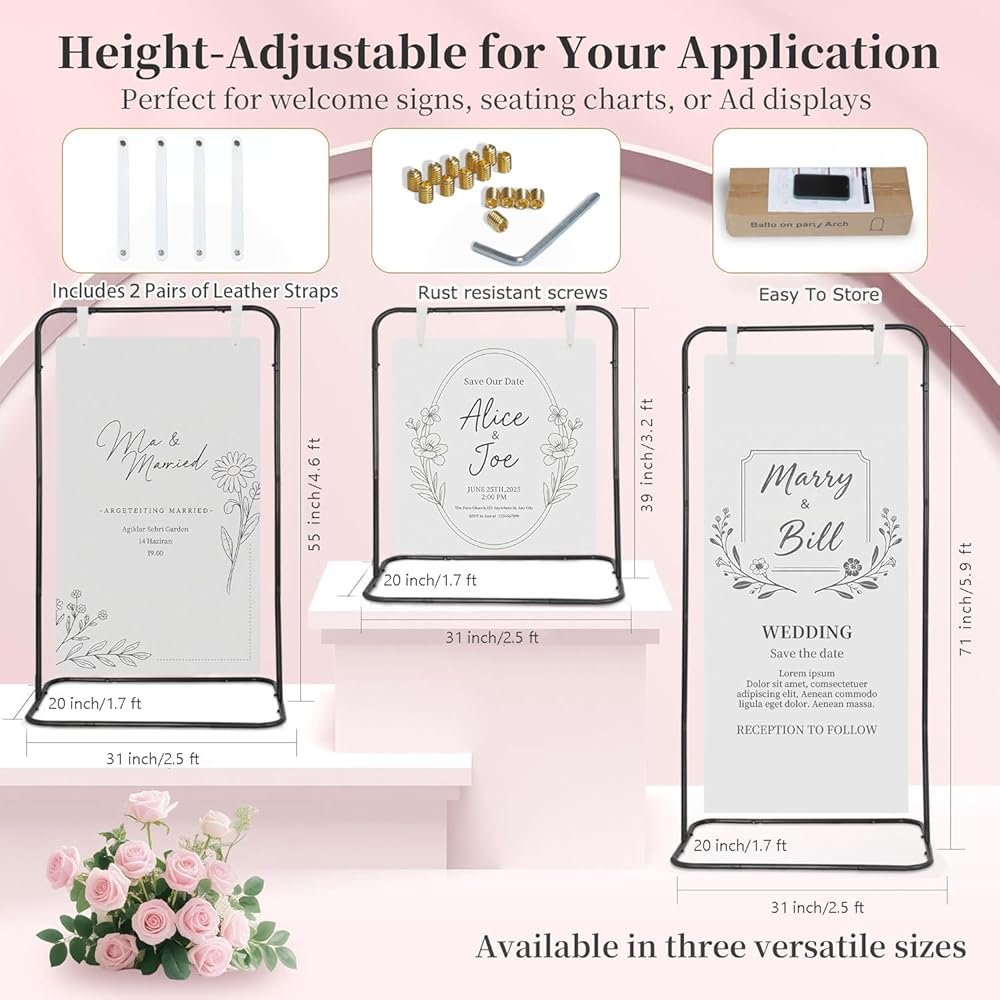 اجعل التخطيط للحدث سهلاً مع حامل اللافتات متعدد الاستخدامات وحزمة التصميم. بما في ذلك قوالب لحفلات الزفاف، وحفلات الزفاف، وأعياد الميلاد، وحفلات استقبال الأطفال، فإن هذا الحامل مثالي لأي مناسبة. مع خيارات الارتفاع القابلة للتعديل، يمكنك بسهولة تبديل محتوى اللافتة. بالإضافة إلى ذلك، فإن التصميم الأنيق يكمل أنماطًا مختلفة، بدءًا من طراز بوهو الأنيق إلى البسيط والأنيق، مما يضمن ملاءمته تمامًا لموضوع الحدث الخاص بك.