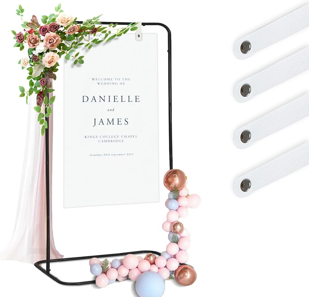 قم بتعليق لافتة الترحيب الخاصة بك بأمان باستخدام أحزمة التعليق الجلدية المتضمنة لحفل الزفاف. تحمل هذه الأشرطة المتينة المزودة بمسامير علامات يصل سمكها إلى 0.4 سم، بما في ذلك الألواح الإسفنجية والأكريليك، مما يضمن عرضًا ثابتًا. مثالية للعلامات الترحيبية ومخططات الجلوس والمزيد! تشتمل المجموعة على أحزمة باللونين الأسود والأبيض، مما يوفر خيارات متعددة لتناسب نمط مناسبتك.
