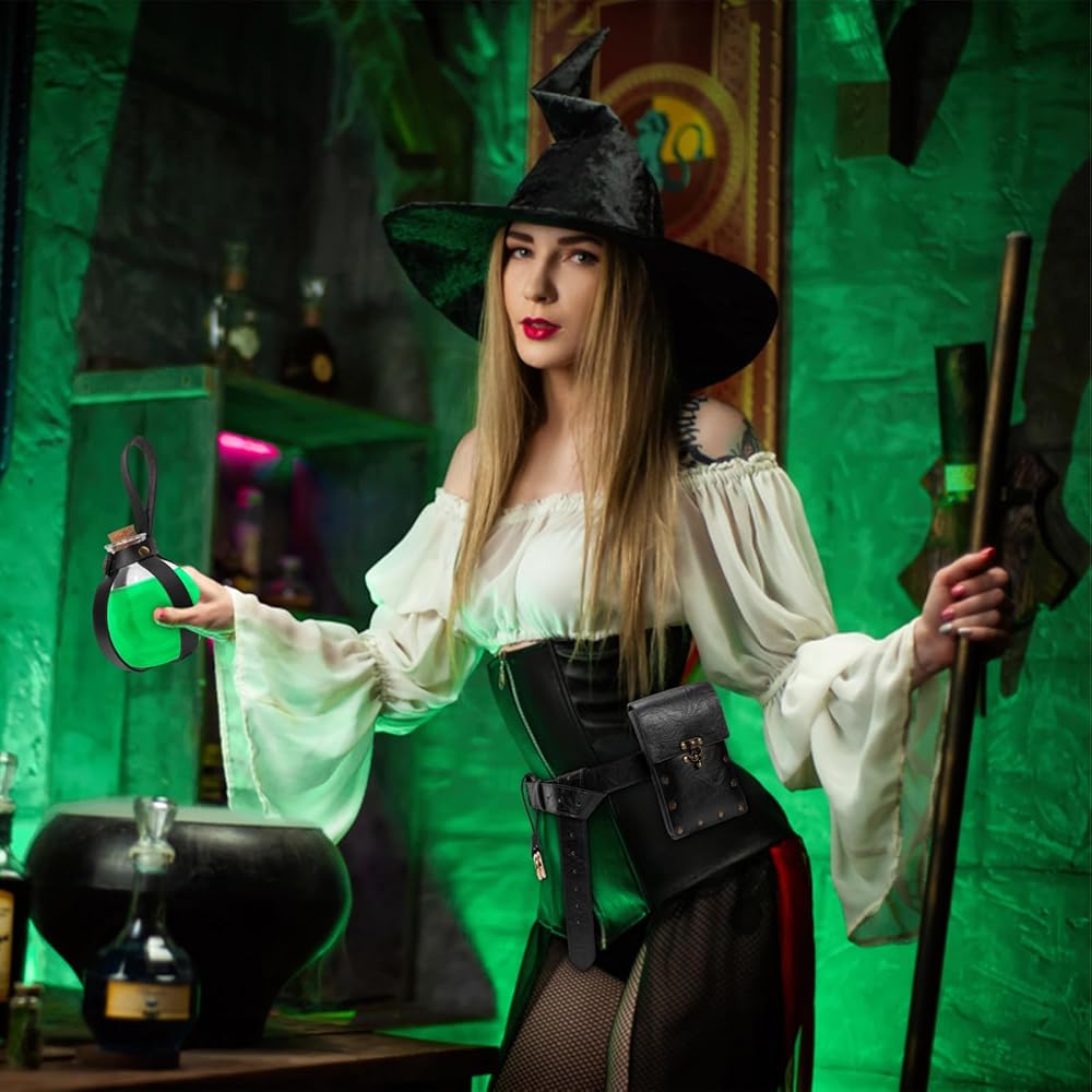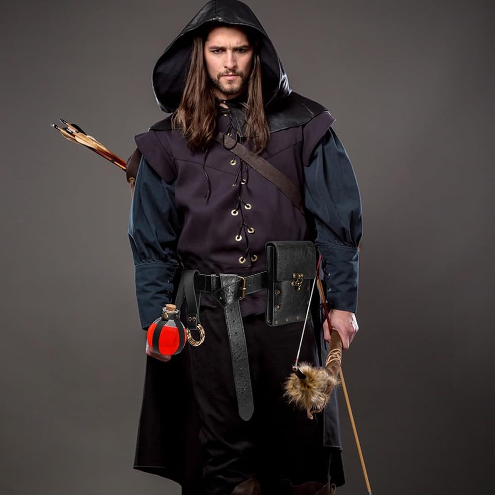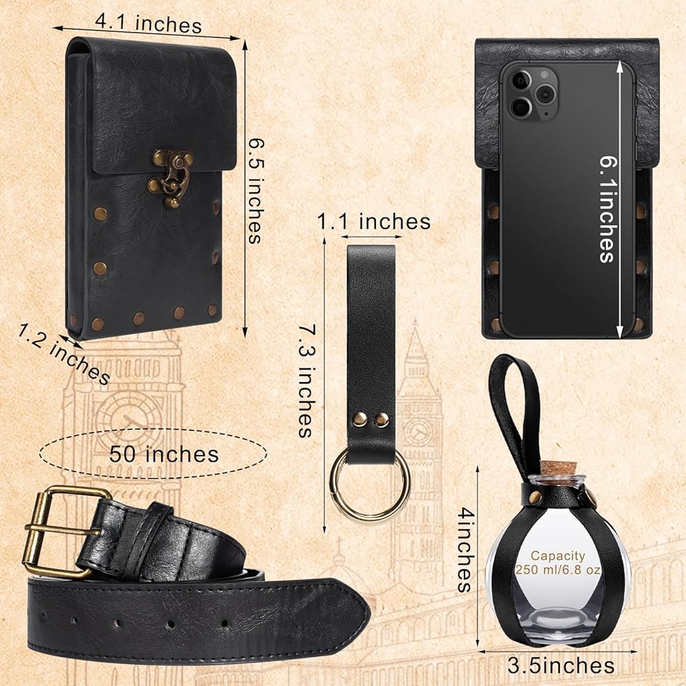 • Vintage Renaissance Accessories Set: Including 1 x leather belt, 1 x belt pouch, 1 x glass potion bottle with cork and holder, 1 x skirt hike, fully equipped renaissance costume accessories to meet your medieval dressing needs