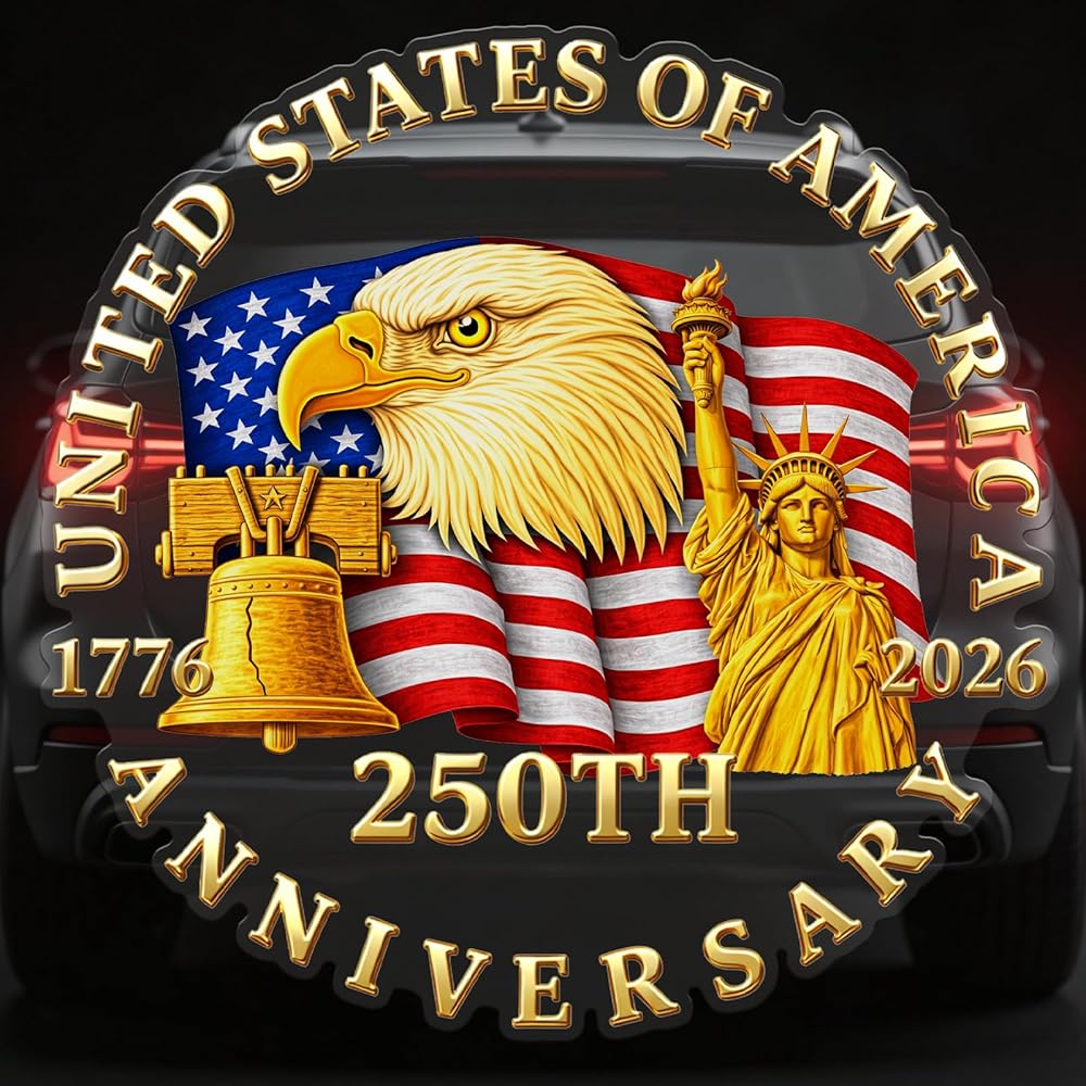 ديكورات السيارات للذكرى السنوية الـ 250 لـ Probsin 1776–2026 250 عامًا من الحرية ملصقات سيارات نسر الولايات المتحدة الأمريكية ملصقات نافذة جدارية فنية قابلة للإزالة من الفينيل لتزيين العطلات للسيارة الداخلية والخارجية والنافذة والجدار وديكور الباب