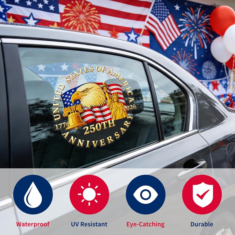 [Package Include] You will receive a 250th anniversary car sticker, which measures about 7.87" x 7.87" / 20 x 20 cm. They are sure to bring a touch of patriotic cheer and add vibrant color to your holiday celebrations.