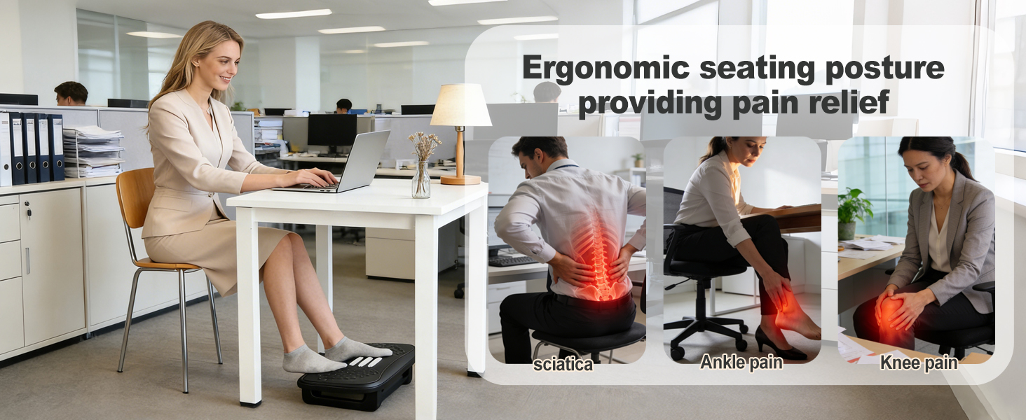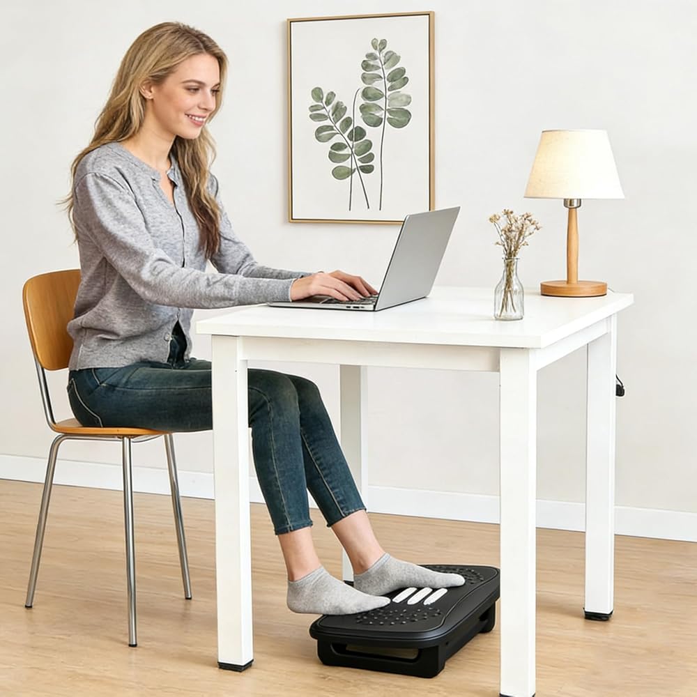 • أنعش قدميك باستخدام بكرات التدليك المدمجة. قم بهز نعلك بلطف على السطح المحكم لتحفيز نقاط الضغط الرئيسية. تساعد هذه الحركة المهدئة على تشجيع تدفق الدم وتقليل الشعور بإرهاق الساق وتوفير لحظة من الاسترخاء دون مغادرة مقعدك.