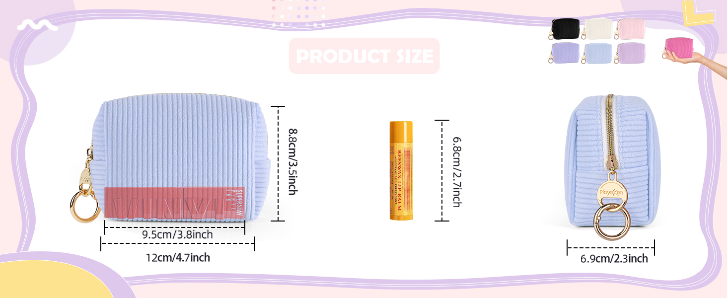 【حقيبة أحمر الشفاه الصغيرة】القياس: 4.7 × 2.3 × 3.5 بوصة؛ يمكن لحقيبة المكياج الصغيرة اللطيفة هذه تنظيم جميع أنواع الأغراض اليومية الصغيرة، مثل السدادات القطنية وأكواب الدورة الشهرية ومستلزمات الإسعافات الأولية للسفر ومشابك الشعر والمرايا الصغيرة والنقود وبطاقات الائتمان وسماعات الرأس ومقابس التحويل وما إلى ذلك. يساعد وضع جميع الأغراض الصغيرة في حقيبة المكياج الصغيرة على إبقائها منظمة!
