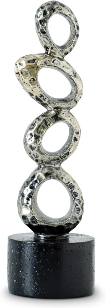 Transform your living or working space with the Modern Abstract Resin Sculpture, featuring 4 stunning irregular gold oval rings connected to a sleek black cylindrical base. This eye-catching piece serves as a sophisticated accent for modern bathrooms, homes, offices, and beyond. Whether placed on shelves, desktops, mantles, or entryway tables, this sculpture enhances any environment with its unique abstract design and high-quality resin construction. Elevate your decor game with this versatile and elegant accent that blends seamlessly into mid-century modern, bohemian, or minimalist themes. Add a touch of artistry to your space today!