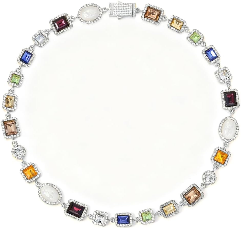 • قلادة من الأحجار الكريمة: تتميز قلادات التنس المذهلة هذه بسلسلة تنس مع أحجار زركونيا مكعبة متعددة الألوان مبهرة تضيف لمسة من الفخامة إلى أي ملابس. مثالية لمحبي المجوهرات الرجالية الذين يتوقون إلى قطعة جريئة ومميزة.