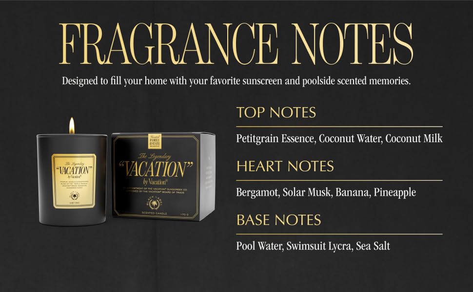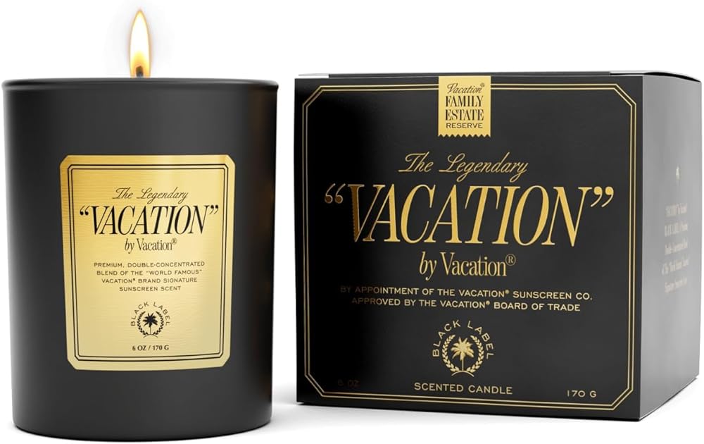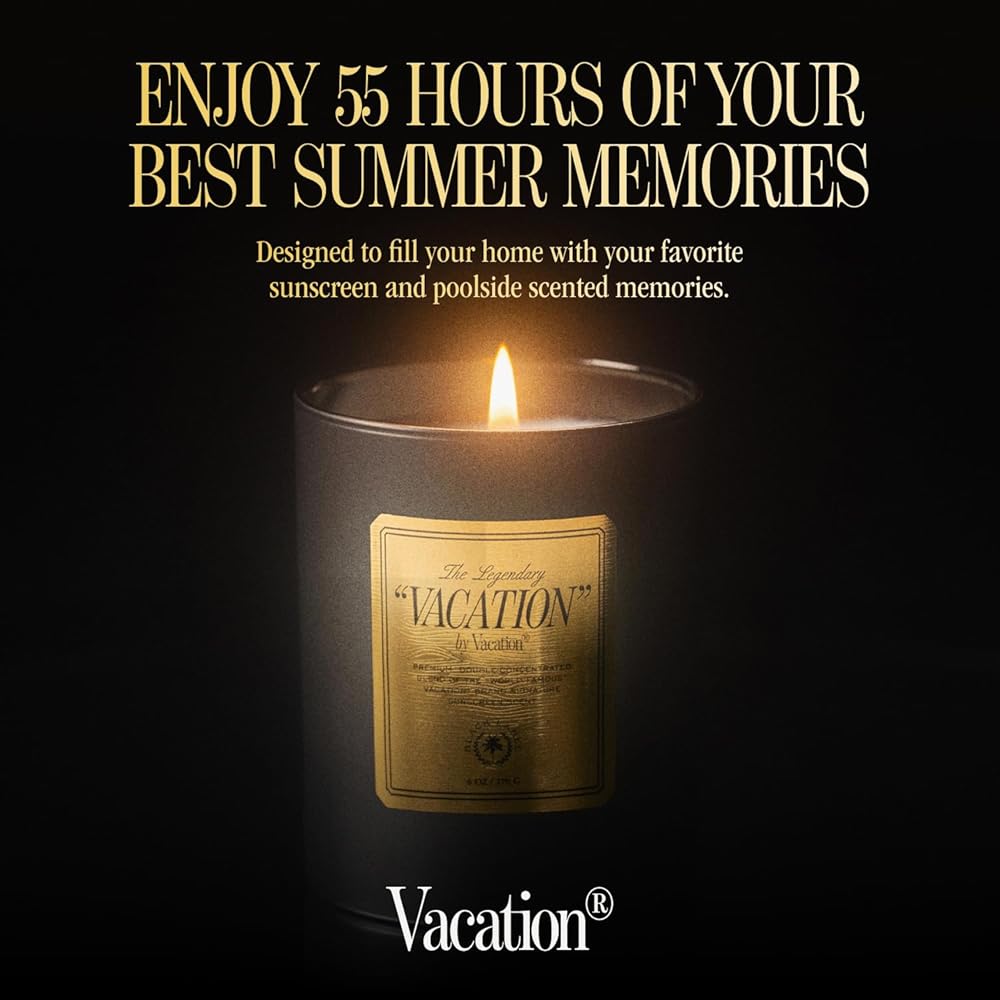 رائحة الصيف المميزة: جرب عطر "VACATION" الحائز على جوائز والغني برائحة جوز الهند والموز والواقي من الشمس. شمعة معطرة مزدوجة التركيز تثير ذكريات حمام السباحة - مثالية لمنزلك أو كهدية مدروسة.