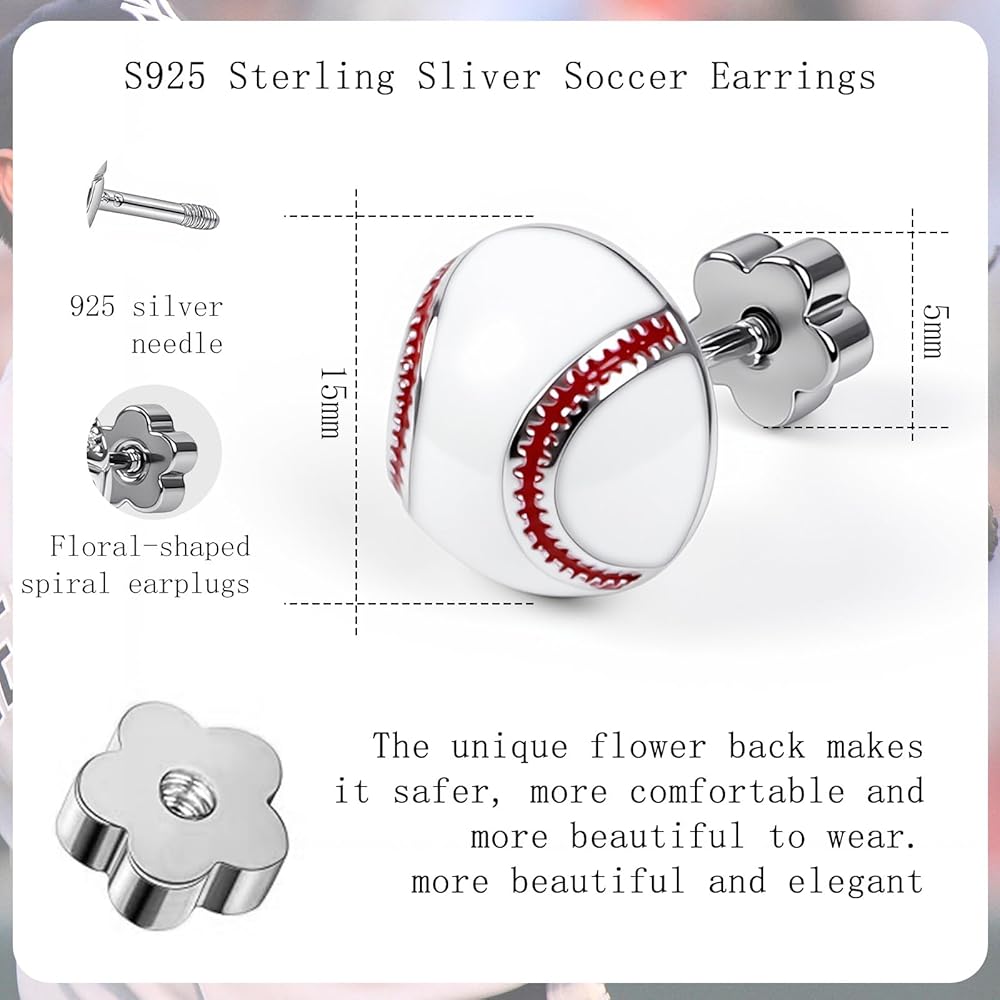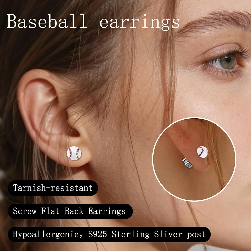 أقراط بيسبول من الفضة الإسترليني عيار 925 - أقراط صغيرة بظهر مسطح مع بطاقات رياضية تحت عنوان مجوهرات لمحبي البيسبول هدايا للنساء وأمها وزوجتهها وصديقتها Bestie أمي أساسيات عيد الفصح وأعياد الميلاد والذكرى السنوية للتخرج