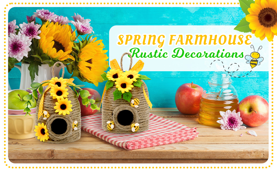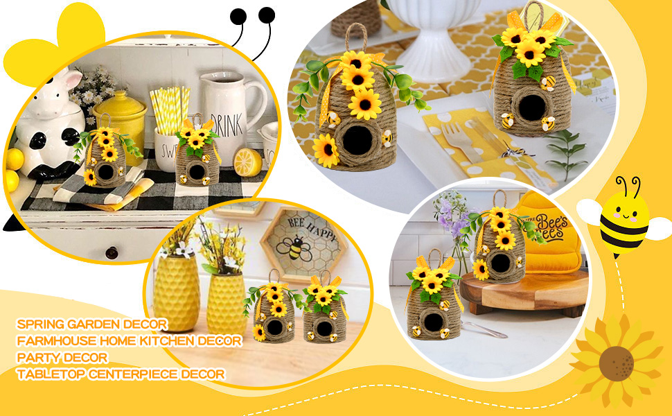 • ديكورات على شكل عباد الشمس والنحل للمنزل قم بترتيب هذه القطع معًا أو بشكل منفصل في جميع أنحاء مساحات المعيشة الخاصة بك للحصول على سحر ريفي منسق. زخارف النحل وعباد الشمس الخالدة تجعلها ديكورات مثالية بطابع النحل وعباد الشمس للمنزل والتي تكمل أنماط ديكور المزرعة والمنزل والريف.