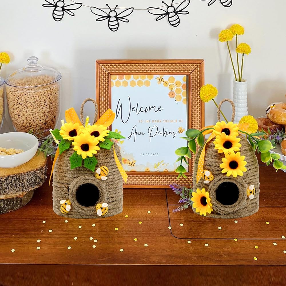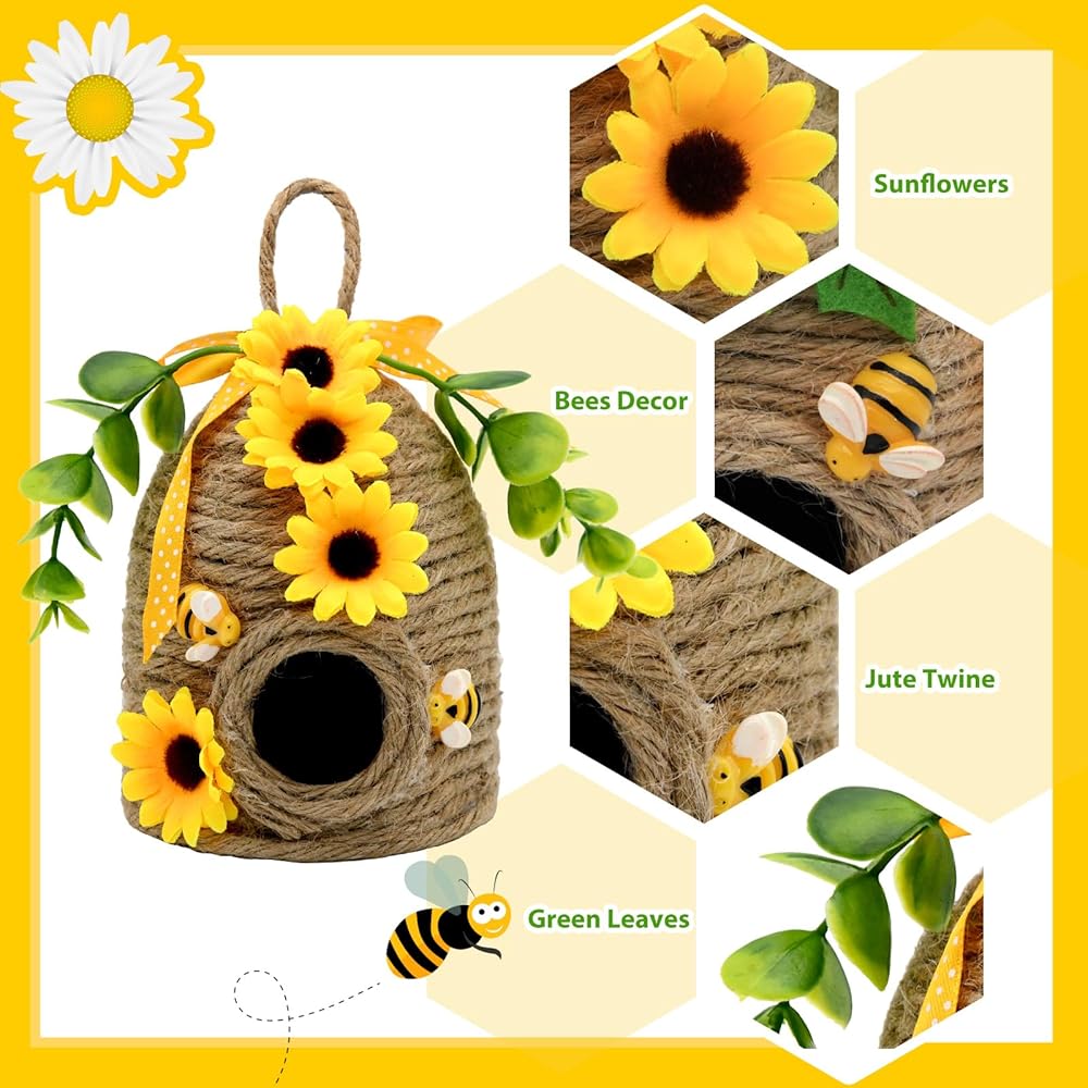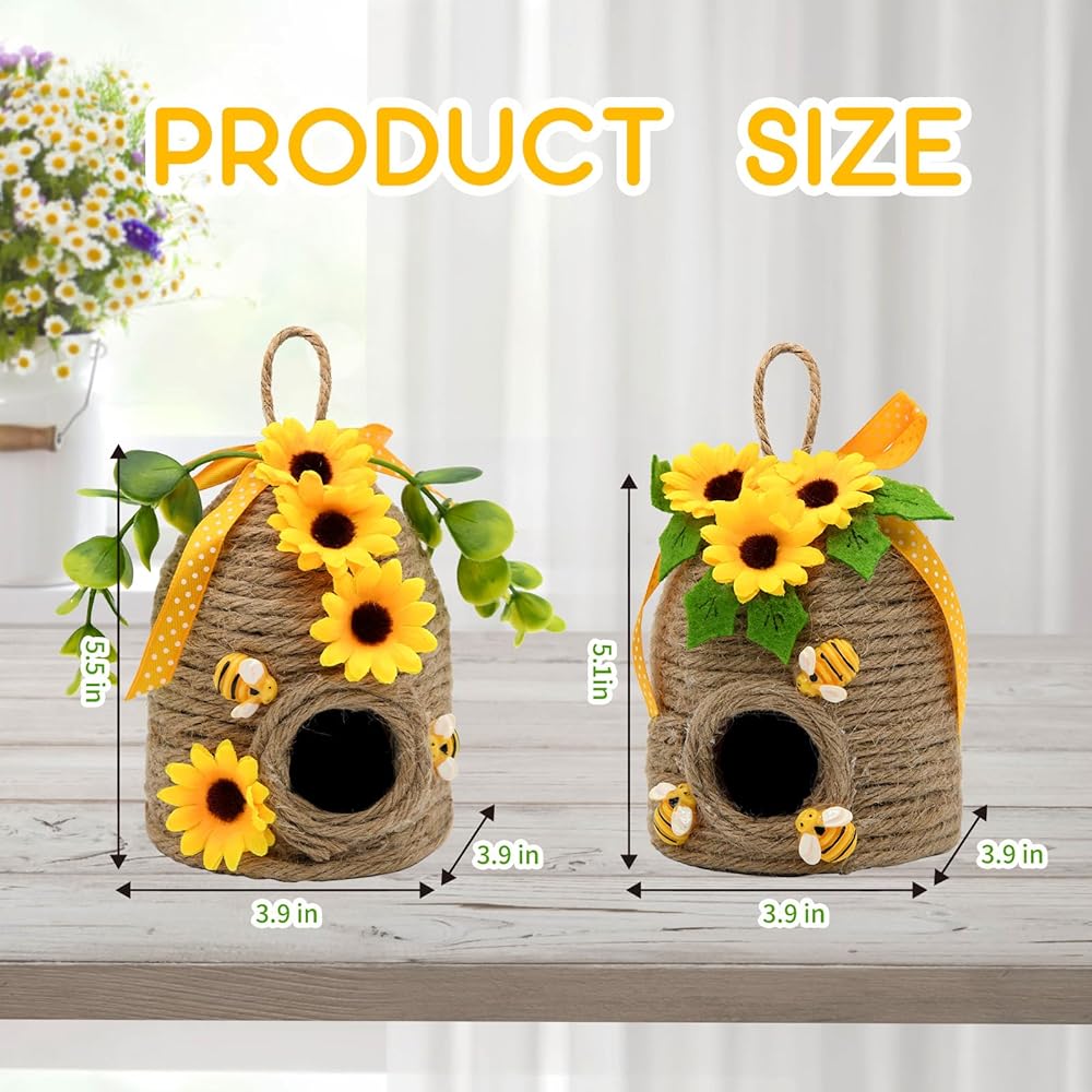 • ديكور خلية النحل على شكل عباد الشمس الريفي أضف شخصية المزرعة الساحرة إلى منزلك من خلال مجموعتنا المبهجة المكونة من قطعتين والتي تتميز بتصميمات قرص العسل وعباد الشمس! تجمع كل قطعة من ديكورات مشط النحل على شكل مشط العسل مقاس 12.7 سم بين الأنسجة الطبيعية والزخارف المبهجة، مما يخلق ديكورات مثالية على شكل نحل عباد الشمس للمنزل طوال فصلي الربيع والصيف.
