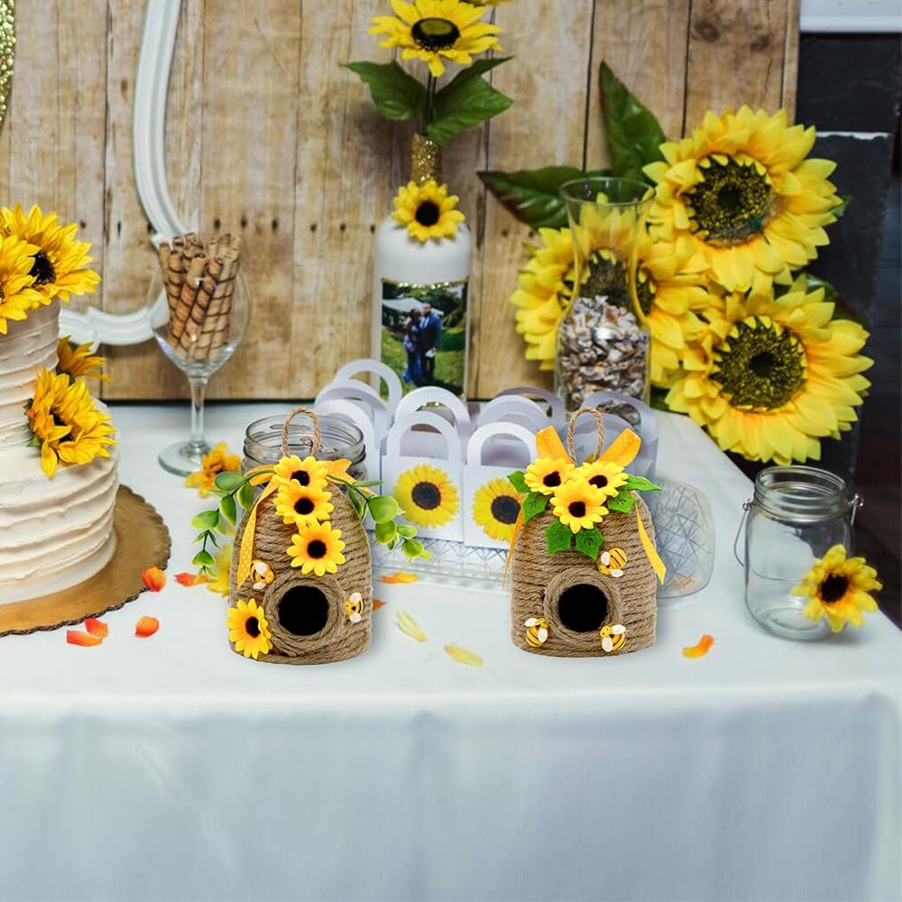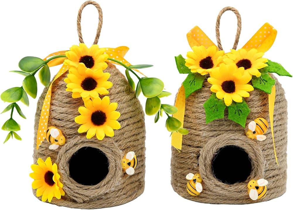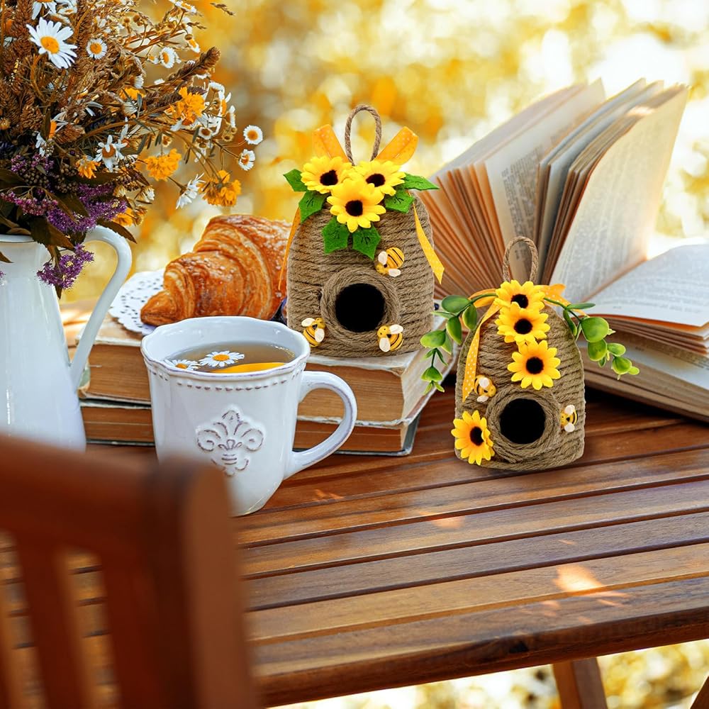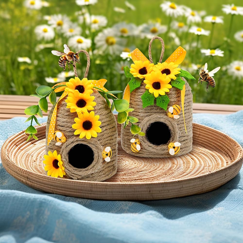 • ديكور خلية النحل على شكل عباد الشمس الريفي أضف شخصية المزرعة الساحرة إلى منزلك من خلال مجموعتنا المبهجة المكونة من قطعتين والتي تتميز بتصميمات قرص العسل وعباد الشمس! تجمع كل قطعة من ديكورات مشط النحل على شكل مشط العسل مقاس 12.7 سم بين الأنسجة الطبيعية والزخارف المبهجة، مما يخلق ديكورات مثالية على شكل نحل عباد الشمس للمنزل طوال فصلي الربيع والصيف.