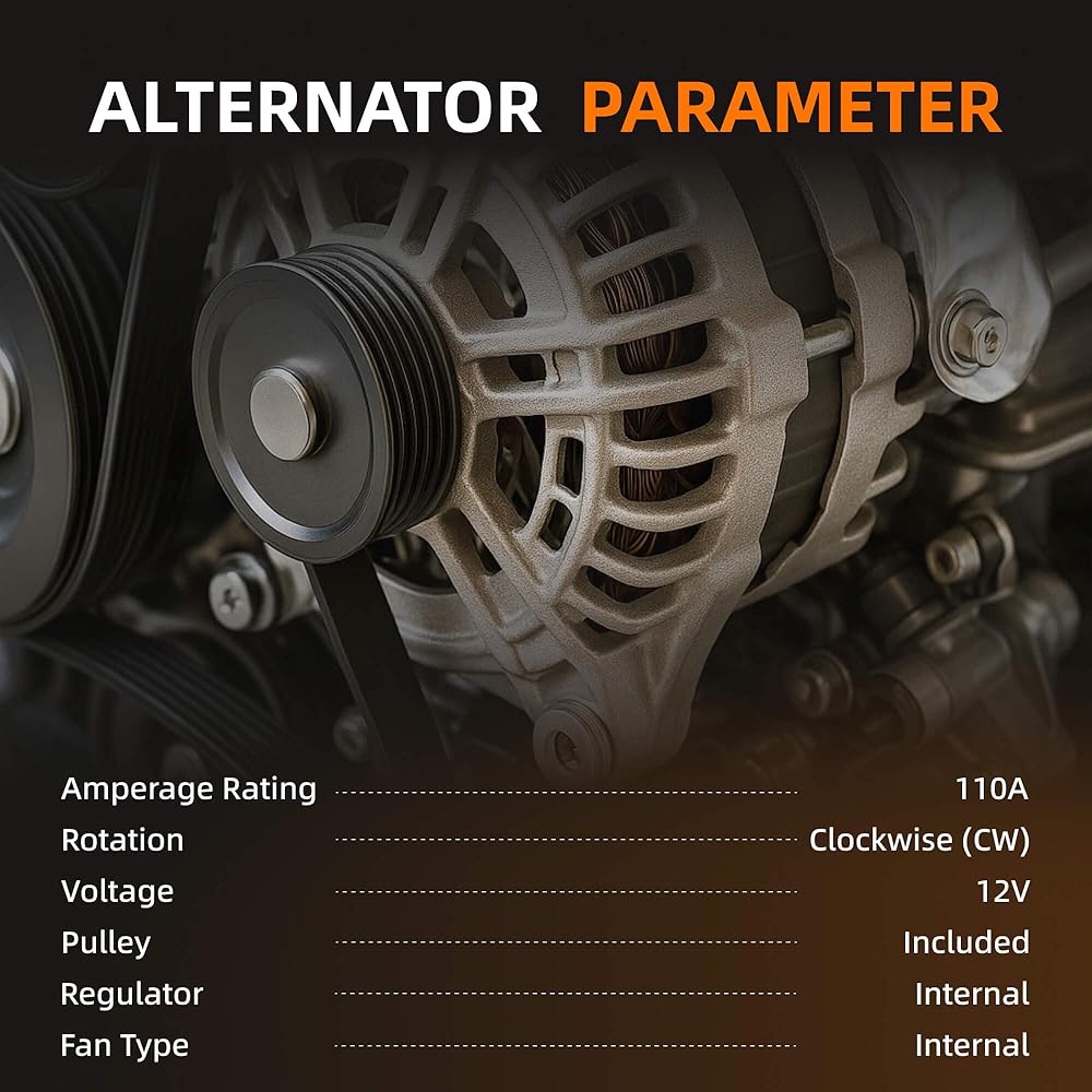 【 المعلمات 】: التيار: 110A ؛ الجهد االكهربى: 12 فولت؛ الدوران: في اتجاه عقارب الساعة (CW)؛ البكرة: متضمنة؛ منظم: داخلي؛ نوع المروحة: داخلية.