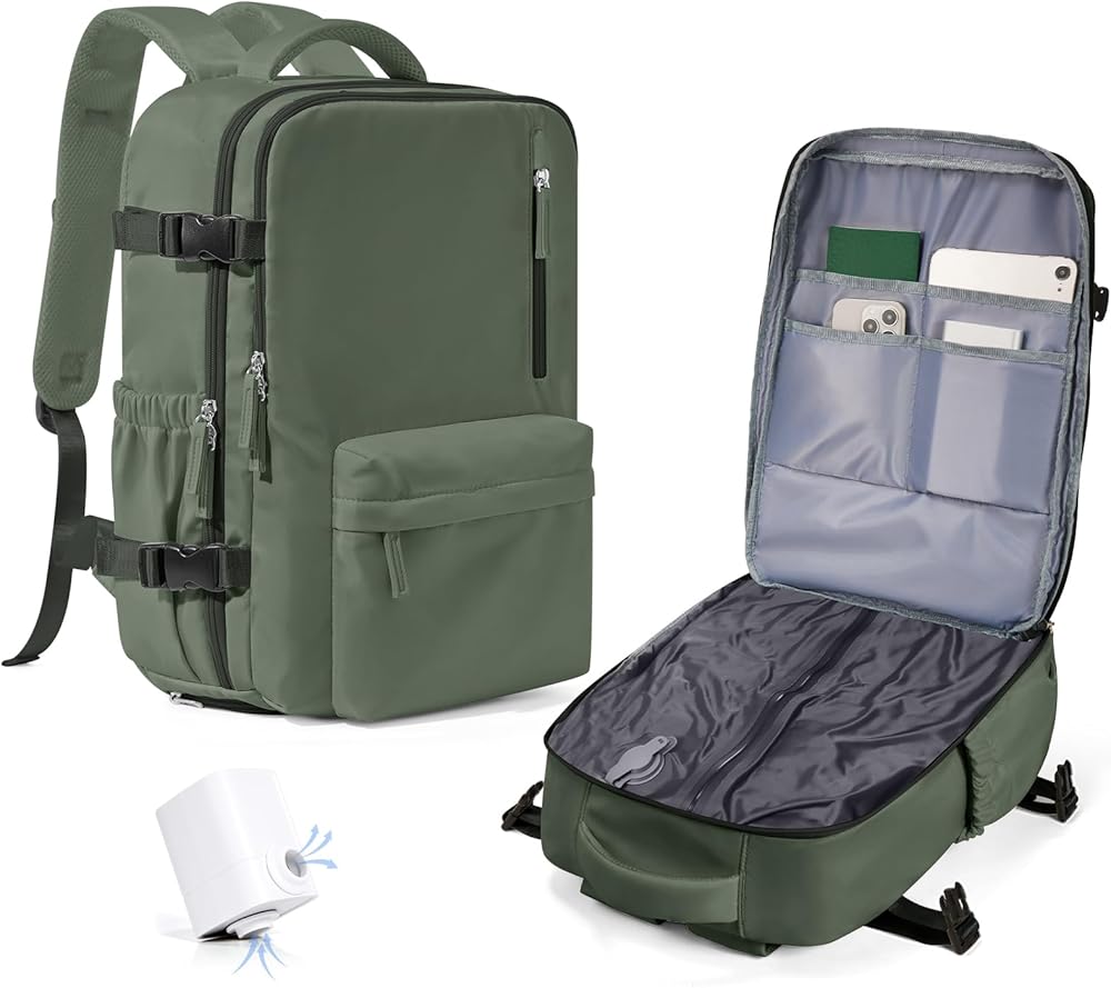 🎒Vacuum pumps - The backpack comes with a portable vacuum pump for easy carrying on the go. It also comes with a variety of pumping port accessories, which can meet different pumping needs, whether it is to quickly compress your luggage or adjust the packing space, it can provide you with great convenience.