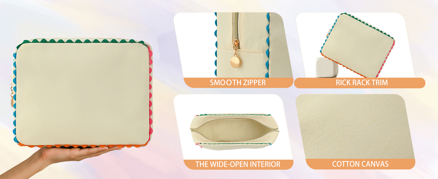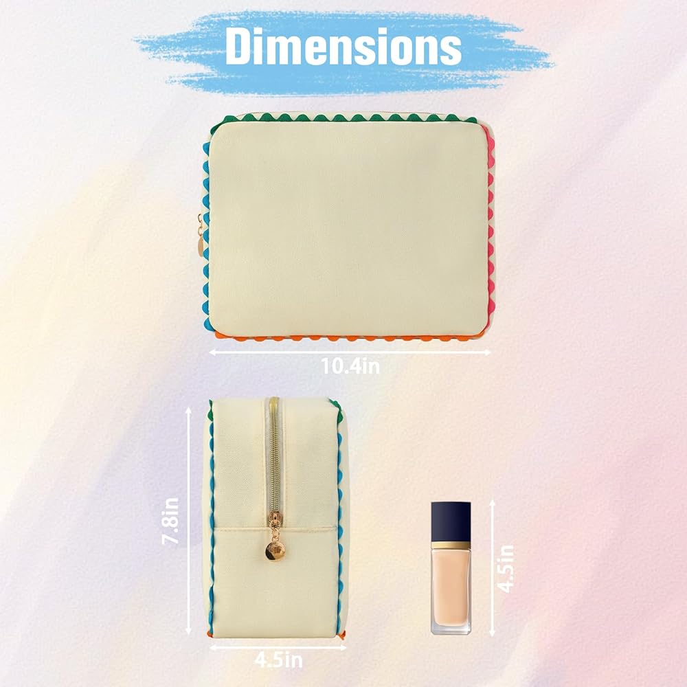 • 【زخرفة قوس قزح ريك 】هذه الزخرفة المرحة بألوان قوس قزح هي الصلصة السرية التي تأخذ حقيبة مكياجك من الأساسية إلى الرائعة! بالإضافة إلى سحرها المبهج، توفر هذه الزخارف الملونة تعزيزًا هيكليًا أساسيًا، مما يساعد القماش المتين على الحفاظ على شكله النظيف والصندوقي.