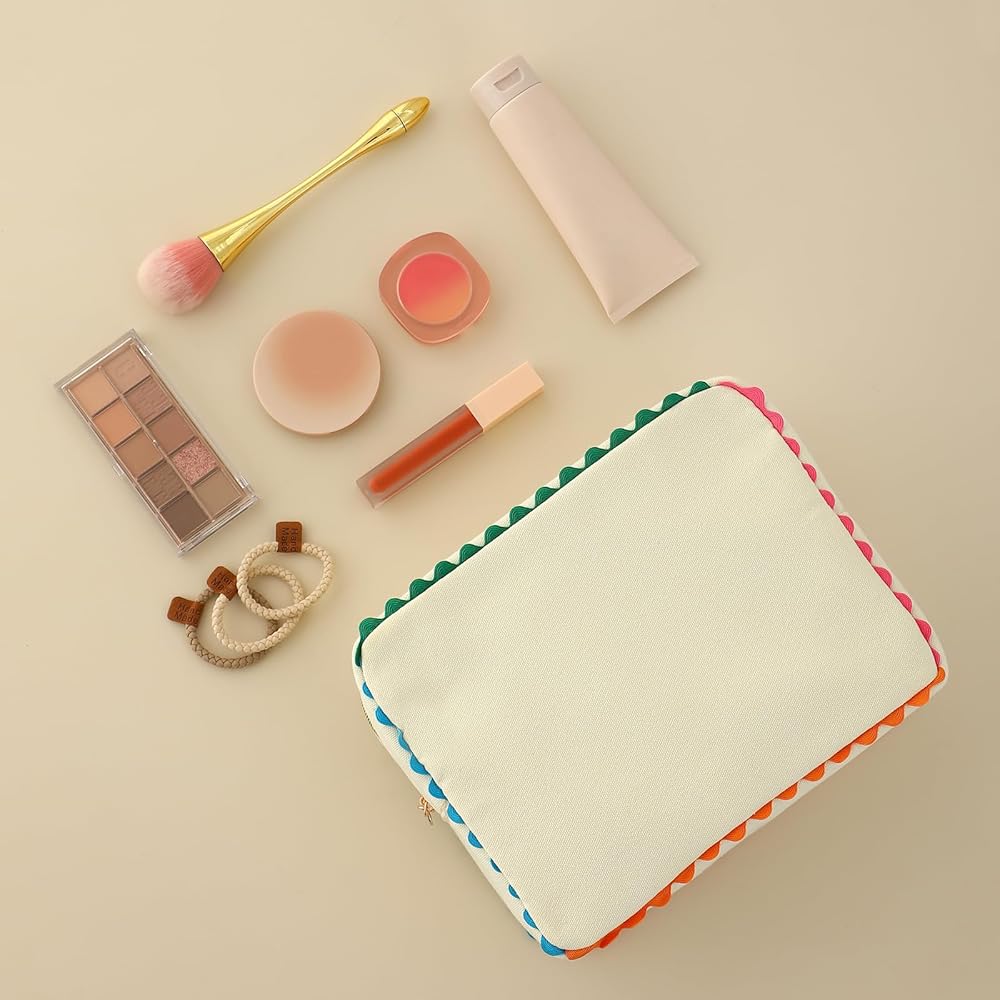 حقيبة مكياج من القماش للنساء، حقيبة مستحضرات تجميل لطيفة على شكل رف قوس قزح، منظم أدوات الزينة أثناء السفر، للاستخدام اليومي، الشاطئ وهدية لصديقتك