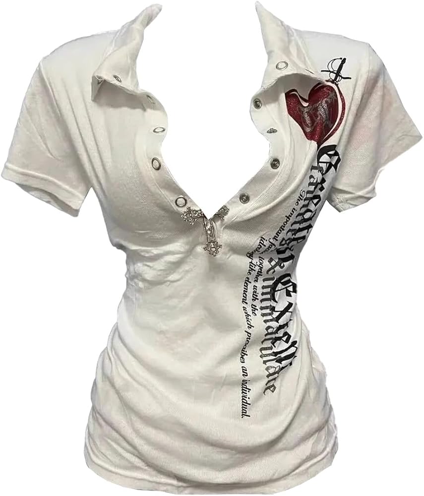 تي شيرت نسائي عتيق Y2k تي شيرت بولو مطبوع عليه حروف تي شيرت ضيق ملابس قوطي بانك هاراجوكو ملابس الشارع الشهير ملابس الجرونج in Kuwait