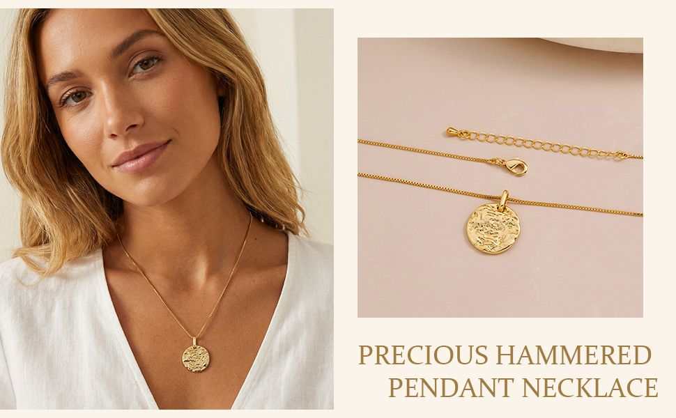 قلادات قلادة ذهبية: قلادات قرصية مطروقة بتصميم بسيط، يمكنك ارتداؤها كقلادة مستقلة، وحتى إقرانها مع قلائدك الأخرى المفضلة