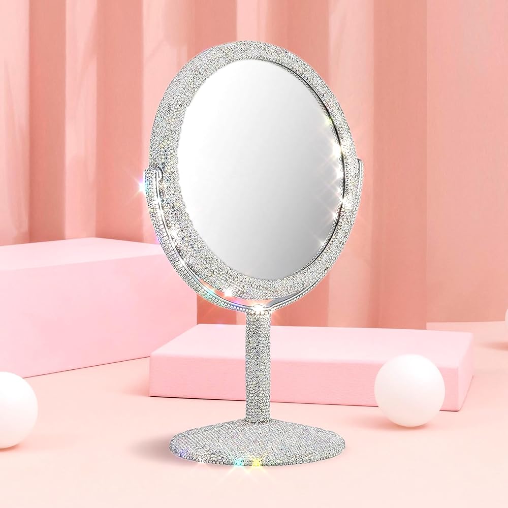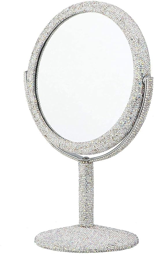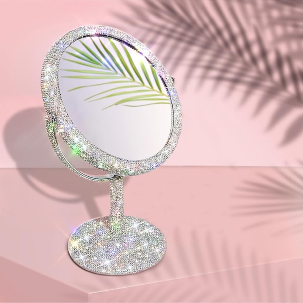 STYLISH: The mirror's stunning rhinestone design adds a touch of glamour to any desk, bathroom, or vanity! The high-quality rhinestones sparkle beautifully, making this mirror a chic addition to your space. Its modern design will complement any decor.