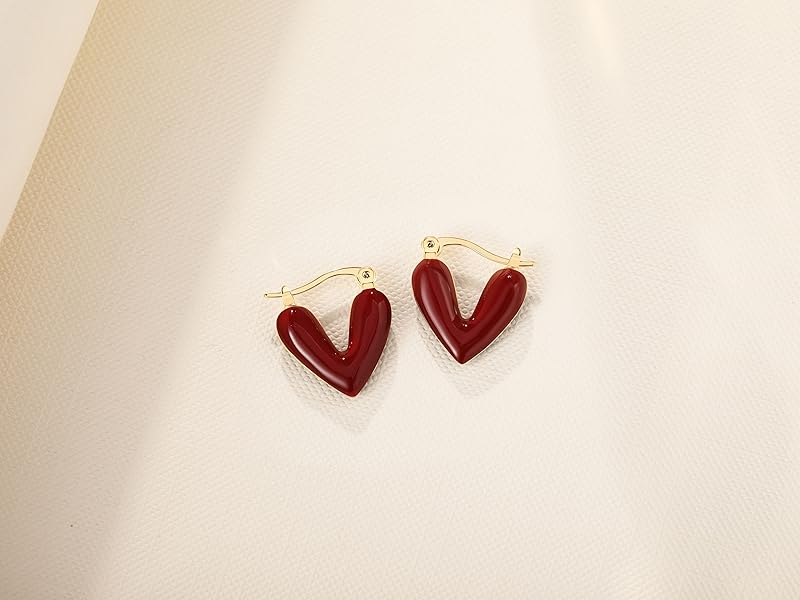 تتميز الأقراط بطلاء ذهبي عيار 14 قيراط يشبه القلب المعلق. الأقراط مشرقة ولامعة وأنيقة ورائعة تلبي الاتجاهات الحالية.