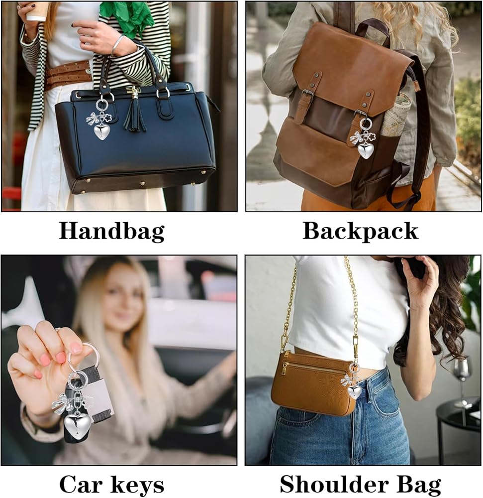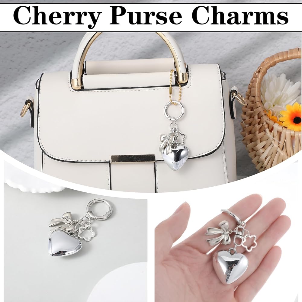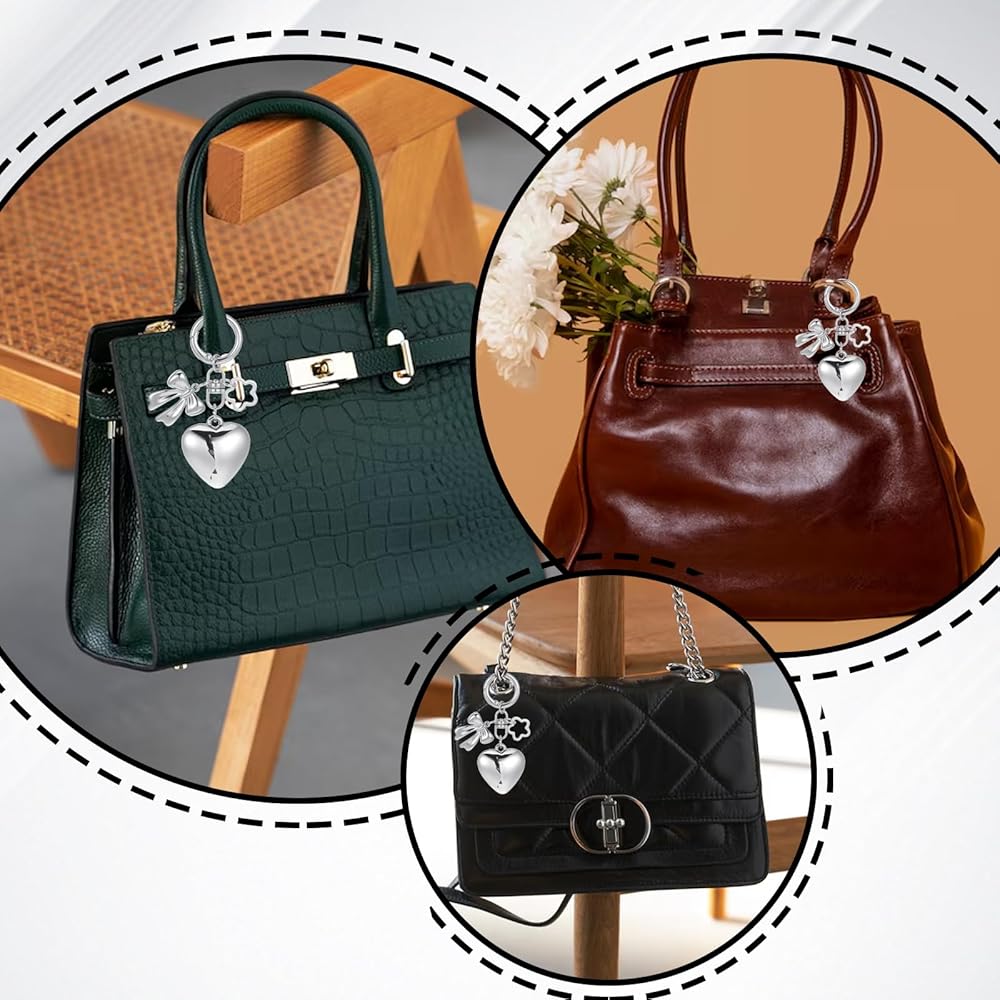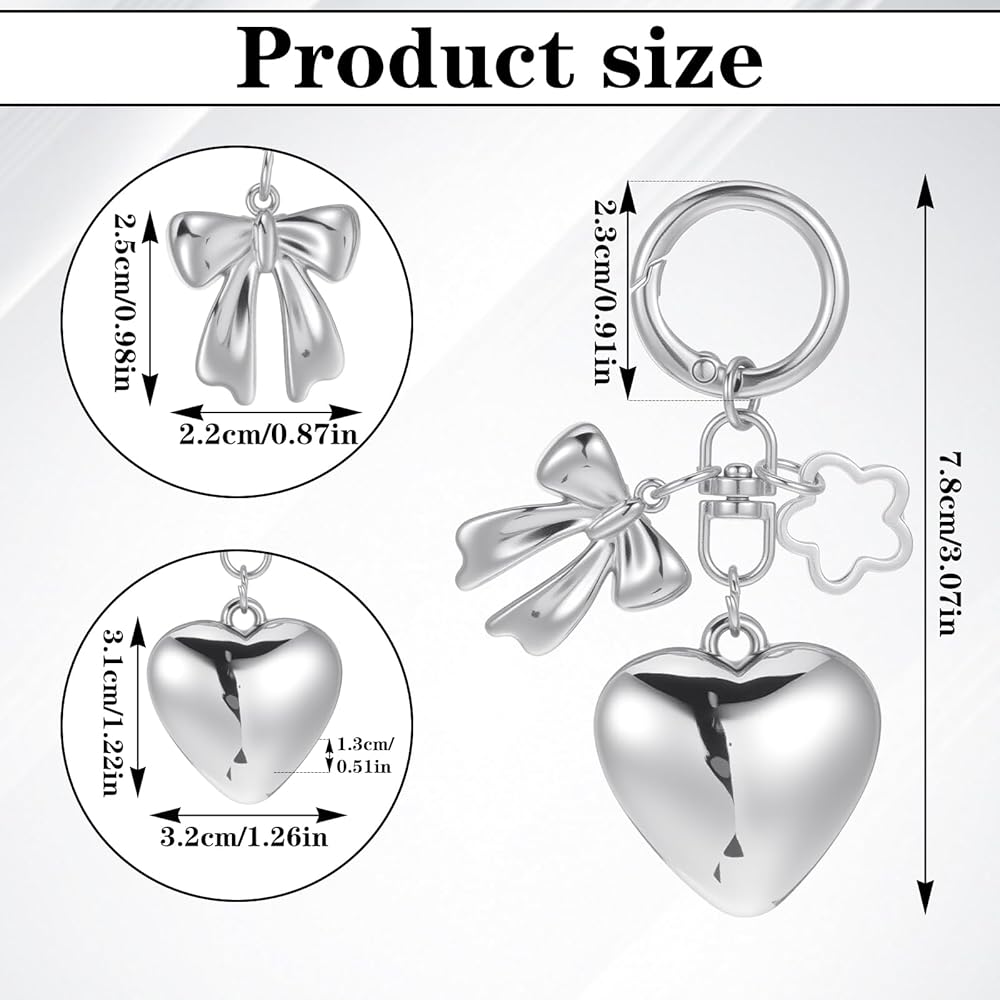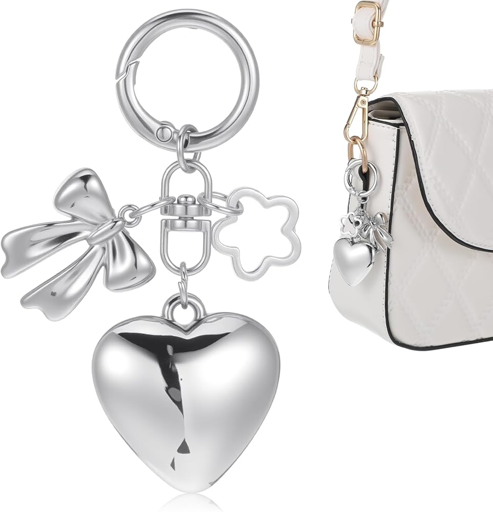 Elegant Silver Bag Charms: Crafted with a heart, bow, and flower design, these silver bag charms add a touch of sophistication to any accessory