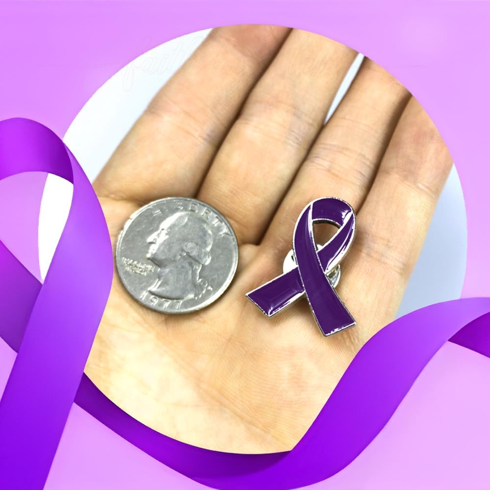 تشمل العبوة: سوف تحصل على 50 قطعة من دبابيس الشريط الأرجواني و50 قطعة من حقيبة هدايا الأورجانزا مقاس 3 × 4 بوصة، مقاس كل دبوس 1 × 0.78 بوصة، مصنوع من سبيكة ومينا.