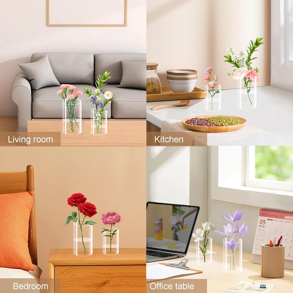 【شفافة ومتينة ومضادة للتسرب】: المزهرية الأسطوانية الشفافة الخاصة بنا مصنوعة من مادة الأكريليك، وهي خفيفة الوزن ومتينة ولا تنكسر بسهولة، مما يجعلها أكثر أمانًا من المزهريات الزجاجية. يعتمد الجزء السفلي تقنية إغلاق صارمة لمنع تسرب المياه بشكل فعال. انتبه: مزهريات الأكريليك خفيفة جدًا، أضف كمية كافية من الماء أو الرمل أو الحجارة الصغيرة قبل الاستخدام للحفاظ على توازن المزهرية.