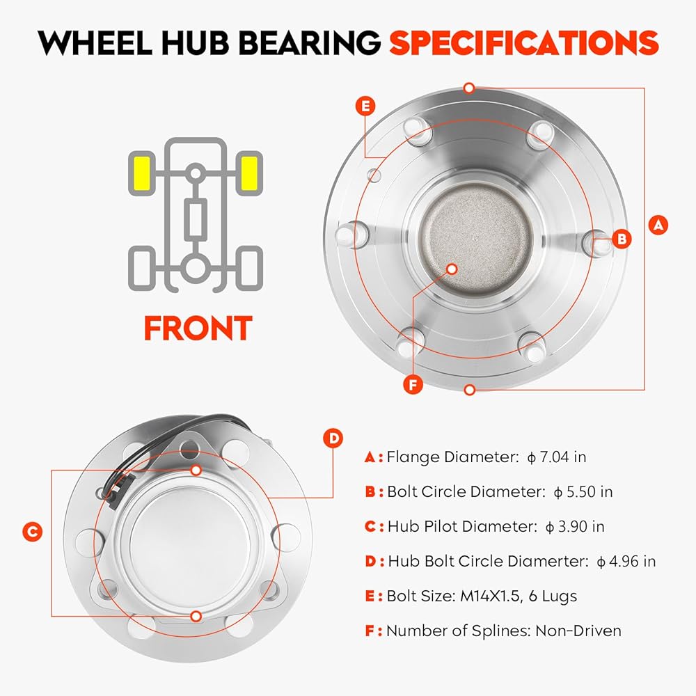 2WD محور العجلة الأمامية تحمل الجمعية لكاديلاك إسكاليد لشيفي تاهو/سيلفرادو 1500/أفالانش/الضواحي 1500 لجي إم سي يوكون سييرا 1500 6 العروة ث/ABS يستبدل 515097 2 قطعة