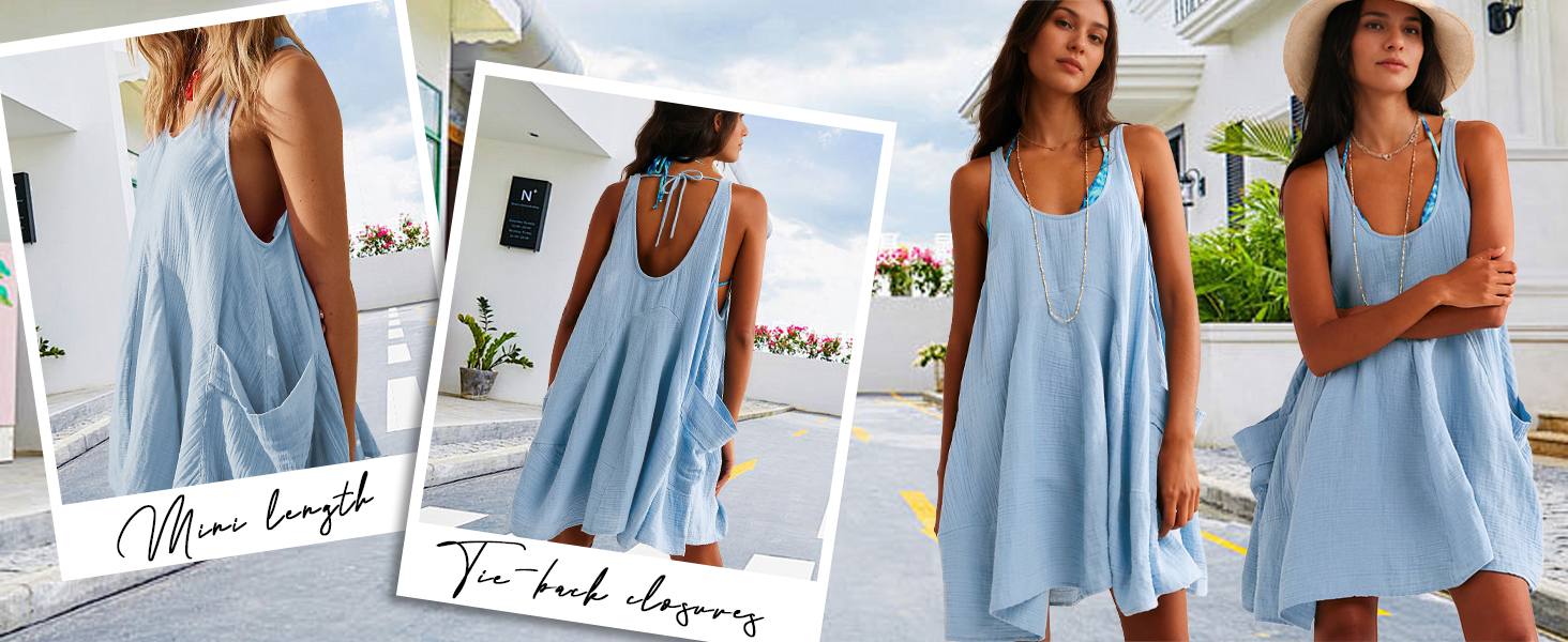 تصميم عصري: فستان بدون أكمام للنساء، مقاس مريح يناسب معظم أنواع الجسم، خط رقبة دائري، لون ثابت، إغلاق برباط خلفي، فتحات أذرع منسدلة، خط خصر إمبراطوري منحني، طول متوسط، وجيبين جانبيين، اصنع ملابس الربيع والصيف بأنماط مختلفة