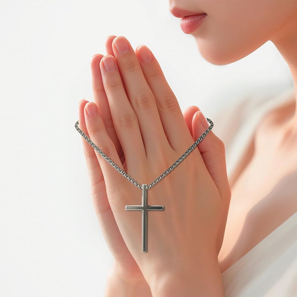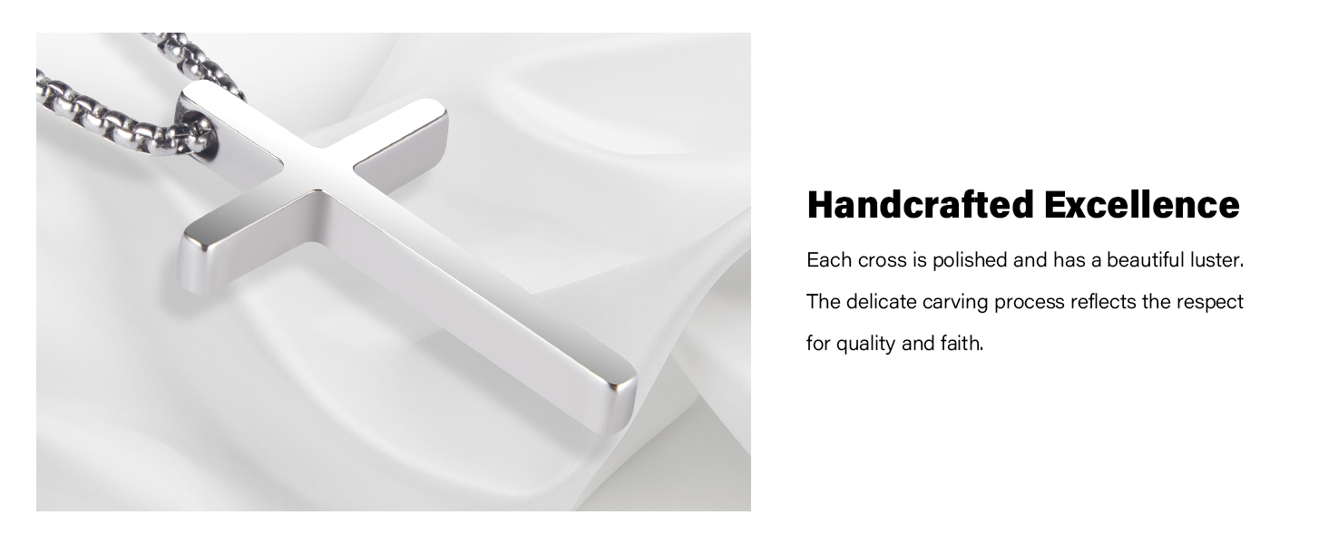 • قلادة متقاطعة من الفولاذ المقاوم للصدأ المصقول - سطح أملس ولا يسبب الحساسية للبشرة الحساسة