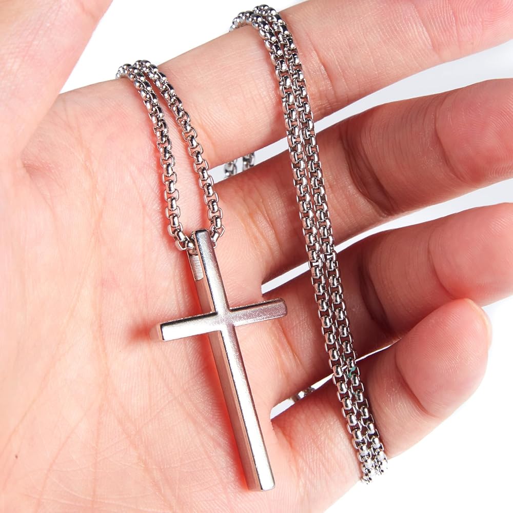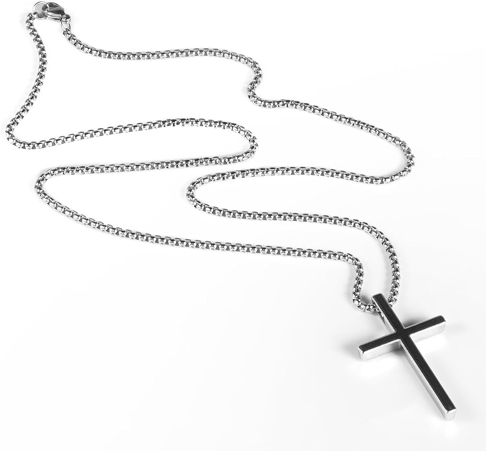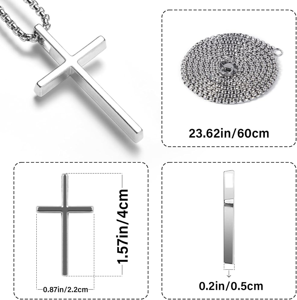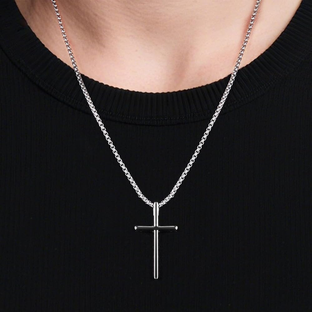 قلادة صليب سيلفي للرجال، حلية صليب سيلفي مع سلسلة متقاطعة 2 مم وقلادة صليب من الفولاذ المقاوم للصدأ، هدية عيد الميلاد، هدية مسيحية للمراهقين