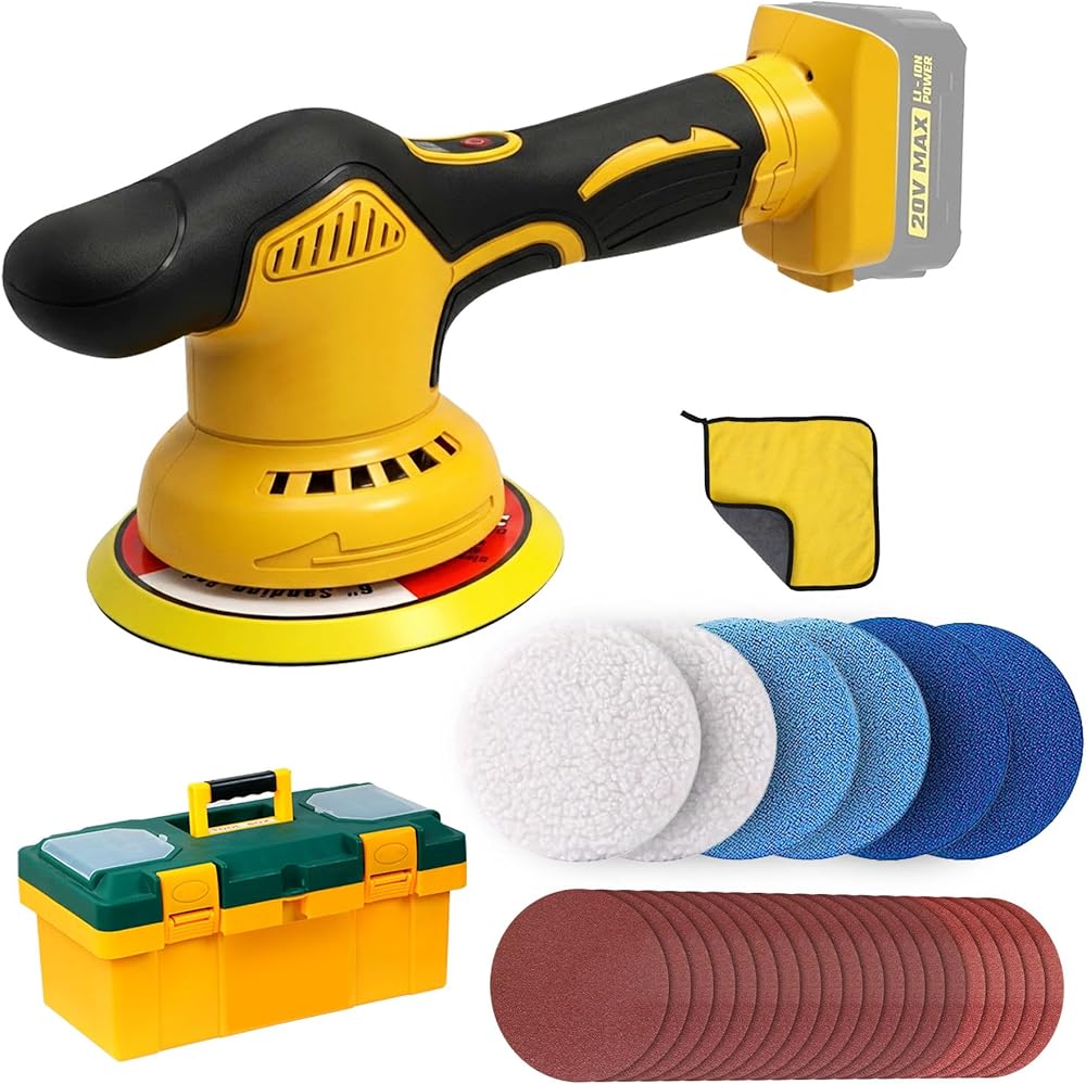 مجموعة أدوات تلميع عازلة لاسلكية احترافية، متوافقة مع بطارية ديوالت 20 فولت، 2800-5800 دورة في الدقيقة، 8 سرعات للتحكم، أداة تلميع مدارية مزدوجة عالية الطاقة، آلة إزالة الشعر بالشمع مع صندوق أدوات