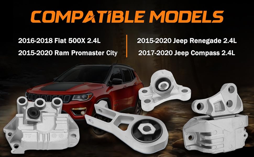 توافق مثالي: مجموعة حامل محرك المحرك متوافقة مع Fiat 500X 2.4L L4 2016 - 2018؛ Jeep Renegade 2.4L L4 2015 - 2020؛ جيب كومباس 2.4 لتر L4 2017 - 2020؛ رام بروماستر سيتي 2015 - 2020، يضمن ملاءمة مباشرة وخالية من المتاعب.