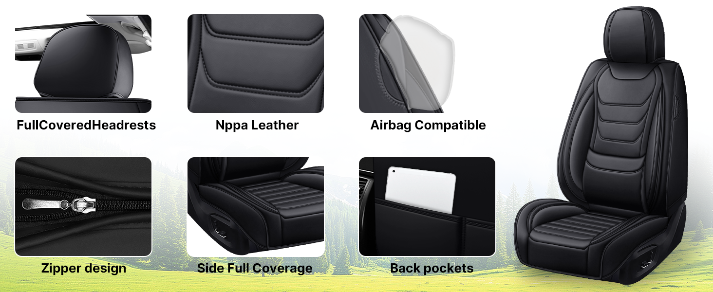 【مادة ممتازة】سطح أغطية المقاعد مصنوع من نسيج جلدي مع خصائص مقاومة للاهتراء، ومتينة، ومقاومة للماء وغيرها. إسفنجة ارتدادية سميكة مزدوجة، مرونة قوية، ليس من السهل تشويهها. بالإضافة إلى ذلك، فهي تتمتع بنفاذية هواء جيدة، والتي يمكن أن تبقي مقعدك جافًا ومريحًا.