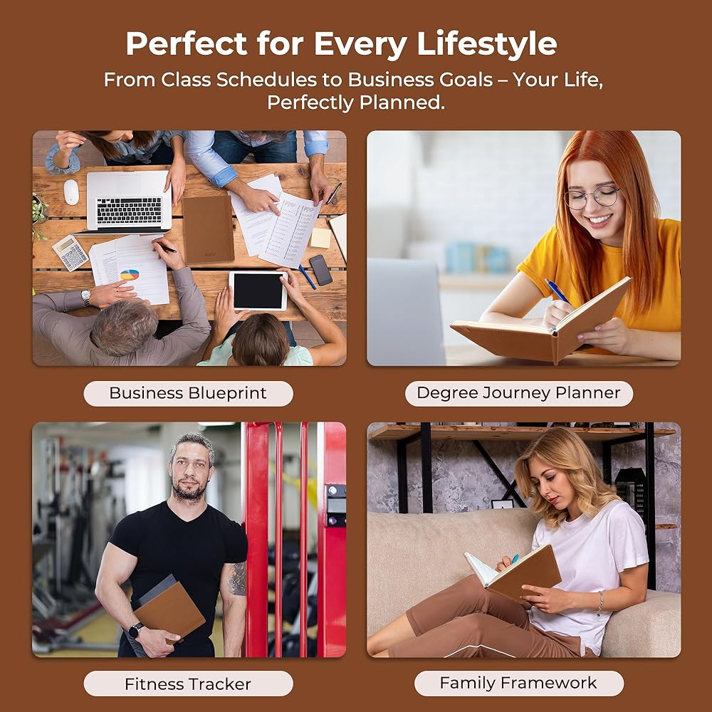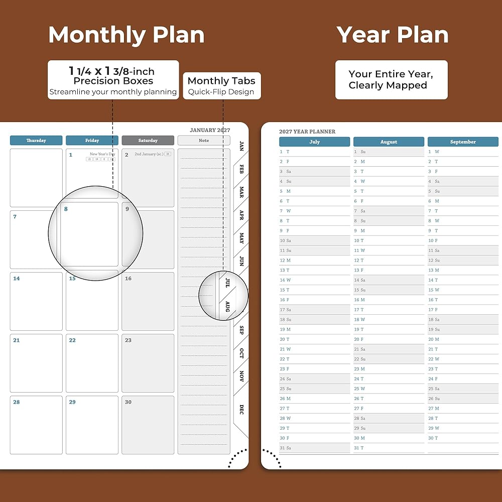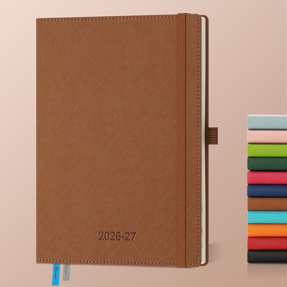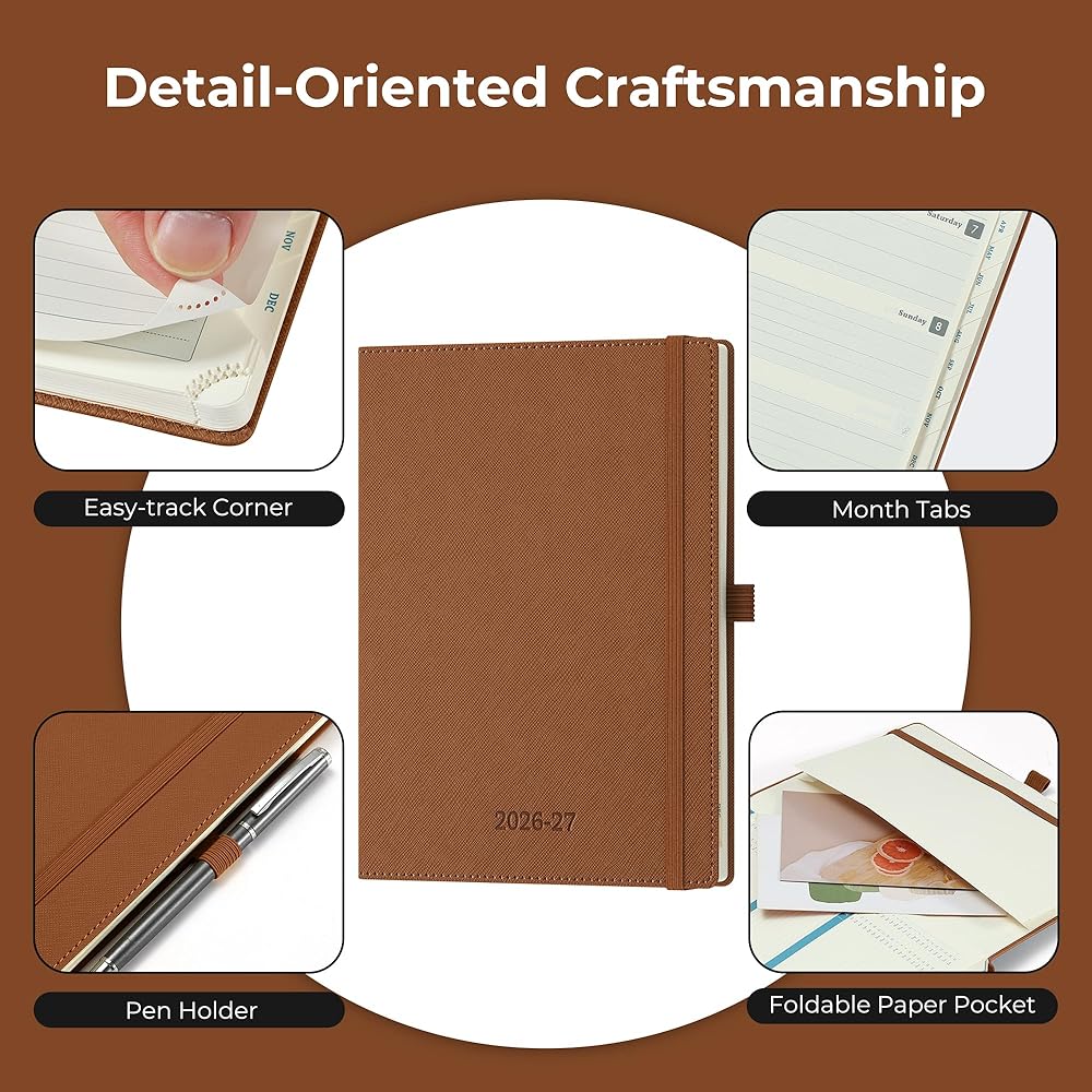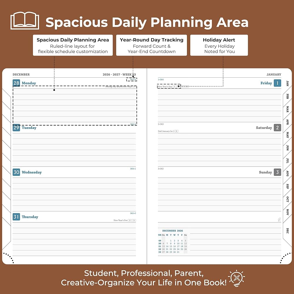 Professional Grade Material for Your Daily Planner: Crafted with FSC 80GSM thick paper, this 2026-2027 planner ensures good writing with markers while gentle on your eyes through its ivory white pages. The leather soft cover and lay flat binding make it a calendar planner companion for busy professionals, students, and families