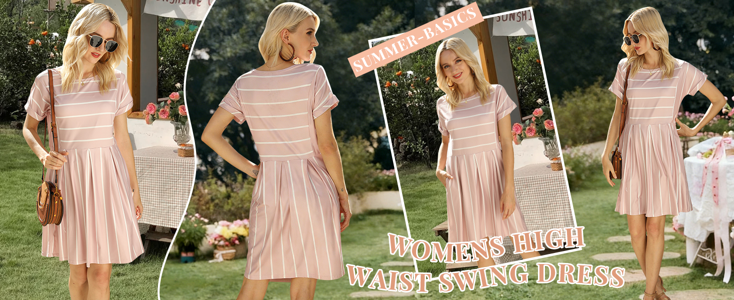 • المميزات: كم قصير، رقبة دائرية، طباعة زهور، طراز صغير، طباعة مخططة كلاسيكية، خصر مرتفع وجيبين. فستان شمس متأرجح للصيف الكاجوال، فستان كلاسيكي على شكل حرف A مع طباعة مخططة مشهورة. كفساتين شاطئ صيفية، تتم طباعتها بألوان زاهية بالزهور، ستجعلك أكثر جاذبية