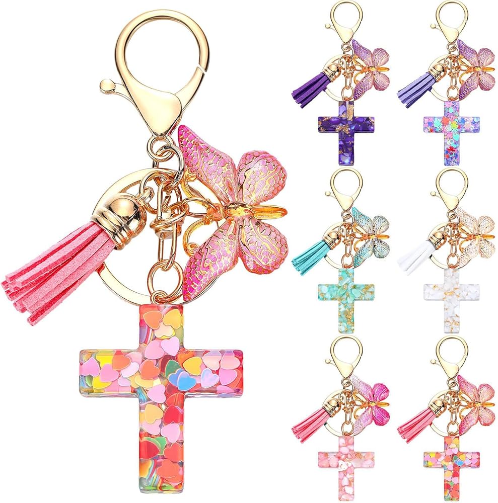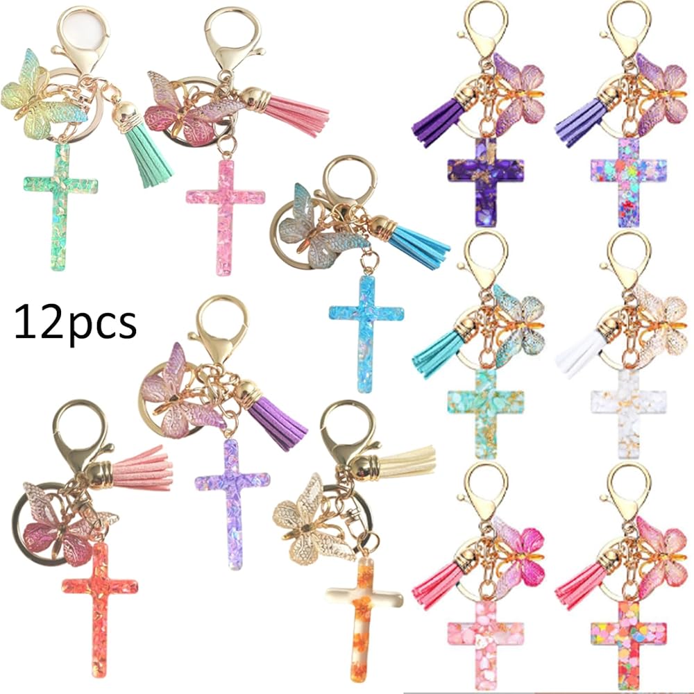 • 【إلهام التصميم】12 قطعة من سلسلة المفاتيح تحتوي على ترتر في الصليب، مع عناصر قلادة الفراشة والشرابة، يمكنها تلبية احتياجاتك الزخرفية المتنوعة، مثالية لحقيبتك أو مفاتيحك. احمل إيمانك أينما ذهبت مع خالدة،